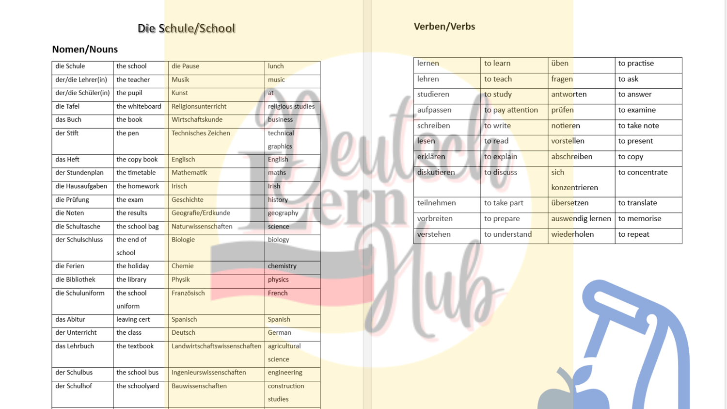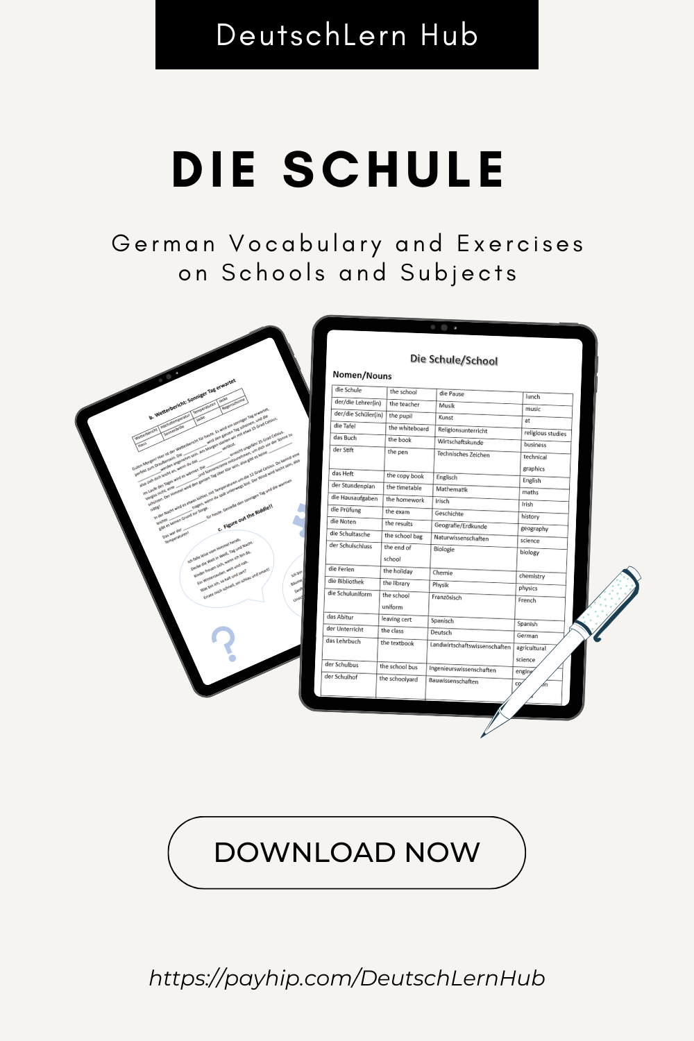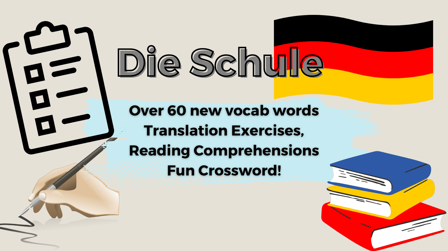 Hi there! Here is an 8 page worksheet with vocabulary and worksheets on the “die Schule” for you to use in your German classes. The content is transferable from 1st-6th year, as some exercises are more complicated than others. There are 66 new vocab words, including nouns AND verbs, as well as a fun little crossword at the end. Enjoy and I hope you’re students benefit from it as mine have!