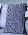 It is easy to modify this pattern for any weight of yarn and to modify the width and length (instructions are included in the pattern for modifying the dimensions of the blanket). It is written for a bulky weight yarn, which creates a dense, cozy blanket. Initially designed as a baby blanket, this blanket is sized from security blanket to throw blanket. This design will look beautiful in a solid, tonal, speckled, or faded color scheme. If you would like a fabric with more drape, I recommend increasing your needle size for a looser gauge, but this will cause your diamonds to not “pop” as much.