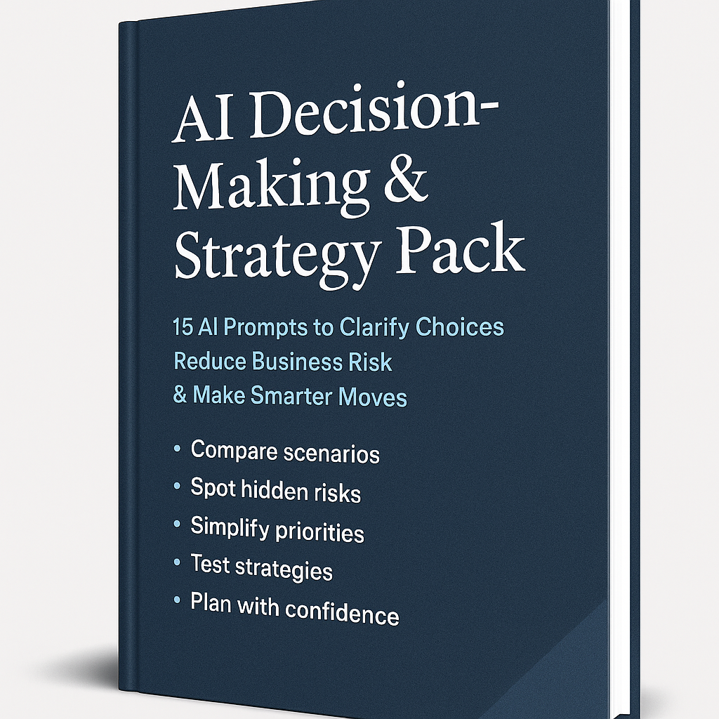 Make faster, smarter business decisions with AI. The AI Decision-Making & Strategy Pack™ gives you 15 prompts to cut through overwhelm, weigh options, and choose the path that leads to growth.