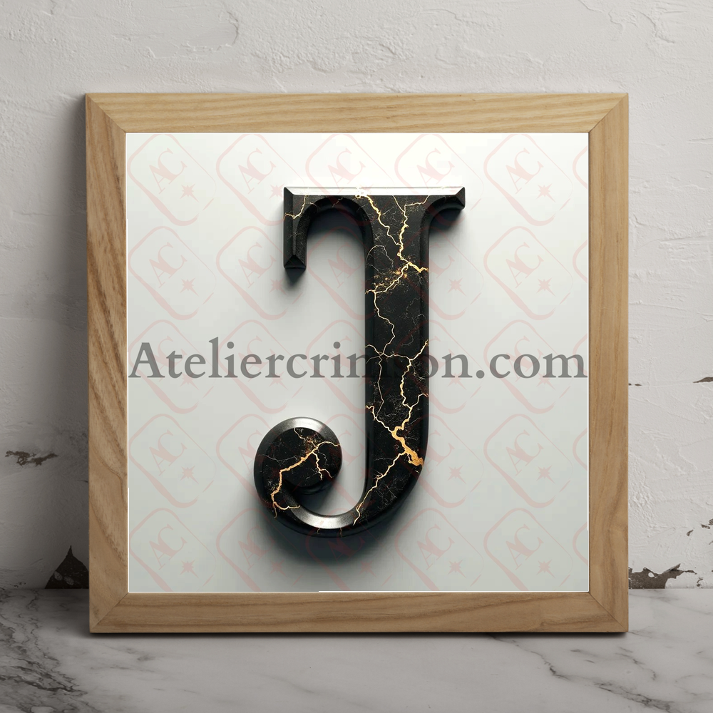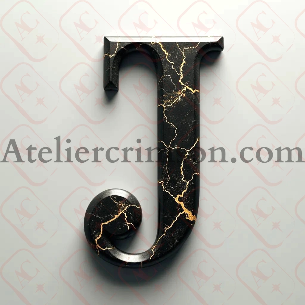 The letter J luxury black marble and gold. Download now this high quality AI-generated digital image.