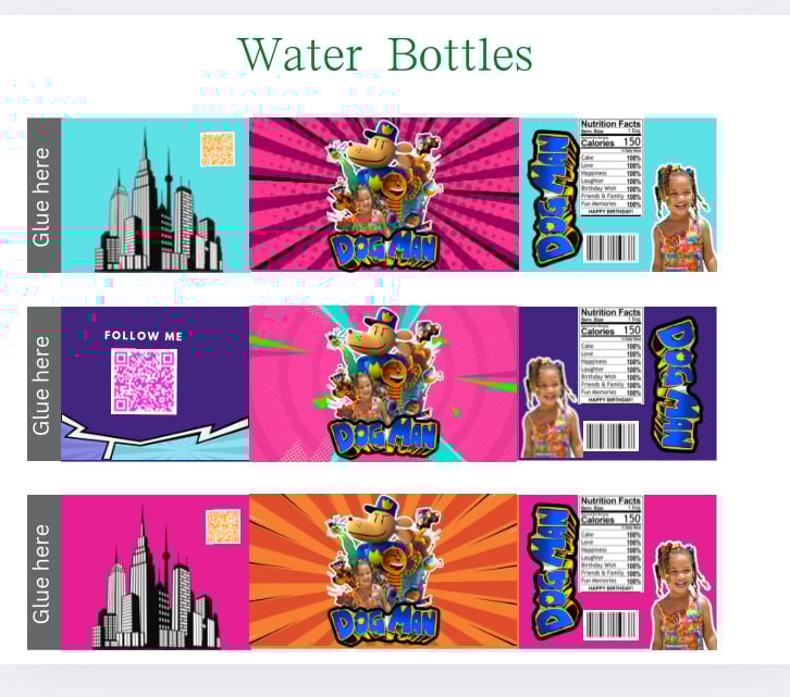 Use these colorful Dogman Designz with this easy drag and drop templates to create your custom party favors. Add your colors, style, name, and photos to make them your own. 5 Designz included.