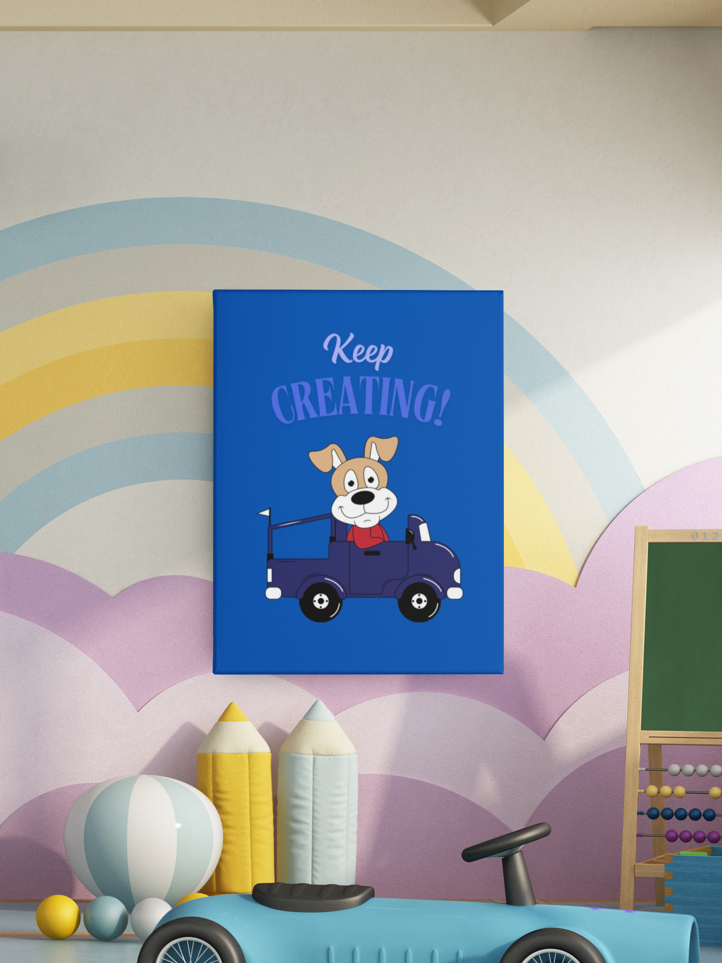 This print features an adorable animal driving a colorful vehicle, paired with an encouraging phrase. This energetic and inspiring print brings joy and movement to any room..