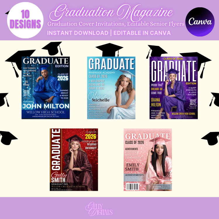 This bundle includes 35 professionally designed templates that are fully editable, allowing you to easily personalize each design with your graduate’s photo, name, school name, and graduation year. Perfect for creating memorable shirts for graduation ceremonies, senior celebrations, family gatherings, and graduation parties.