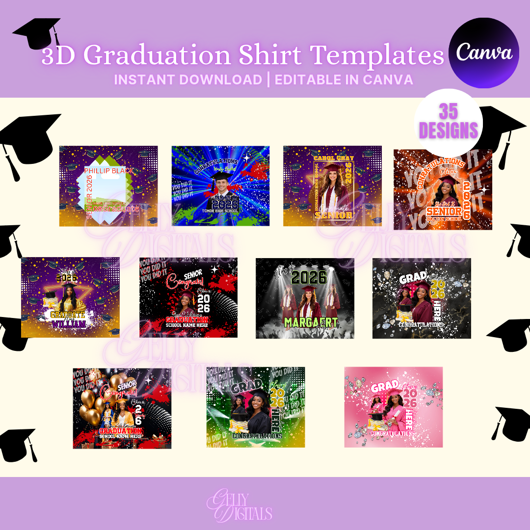 Celebrate your graduate with stunning custom apparel using our 3D Graduation Shirt Templates for Canva.