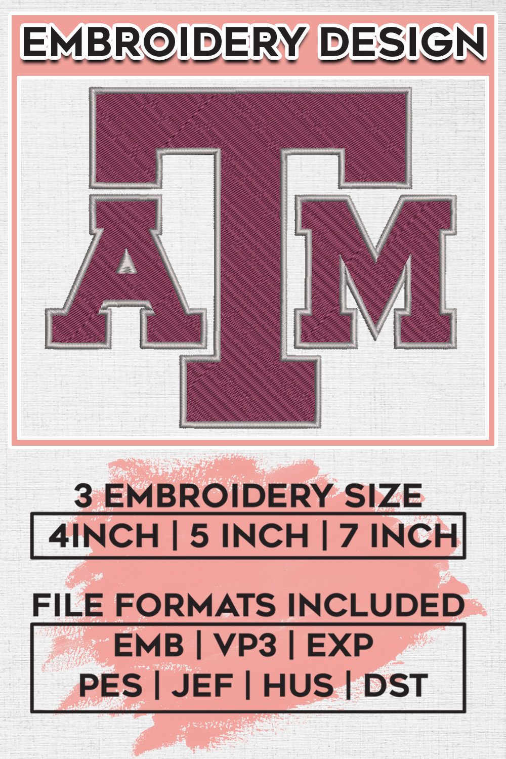 TAM Aggies NCAA Football Team Logo Embroidery Designs, NCAA Texas AM Aggies Machine Embroidery Files, NCAA Logo embroidery designs, NCAA Texas AM Logo, Digital Download