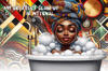 These lovelies are adorned in vibrant, traditional African print fashions, highlighting their cultural heritage and fashion savvy. Their poses invoke a sense of relaxation, contemplation, and sheer joy, aligning with the theme of self-love and personal growth. The overall composition of the images resonates with the theme of our collection. The images serve as an empowering visual for African-American women, especially when paired with affirmations that celebrate healing and self-acceptance.