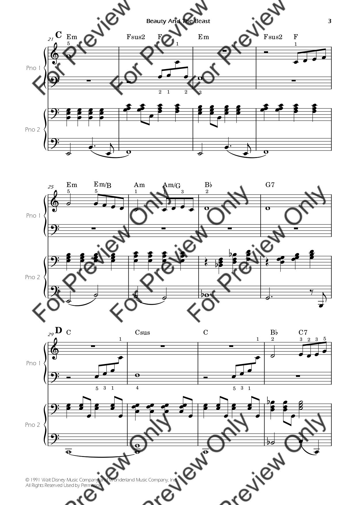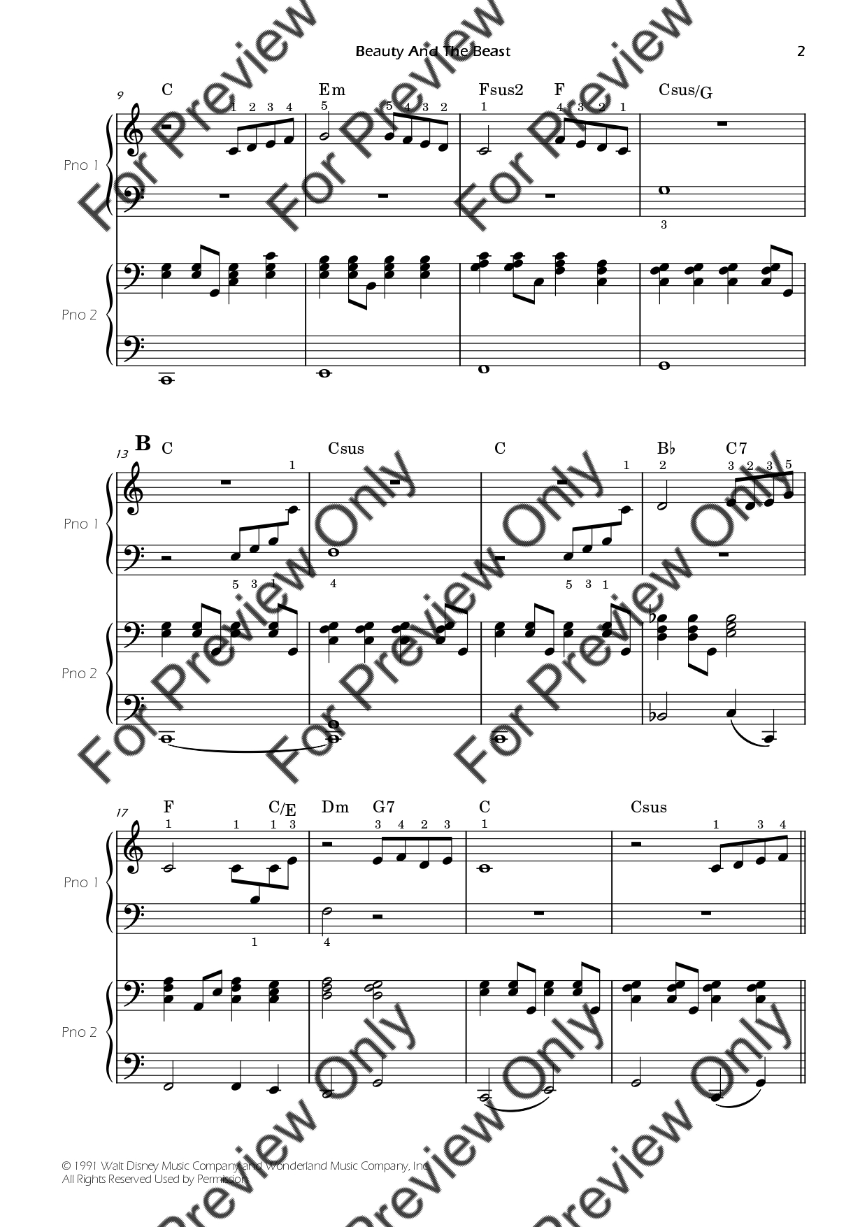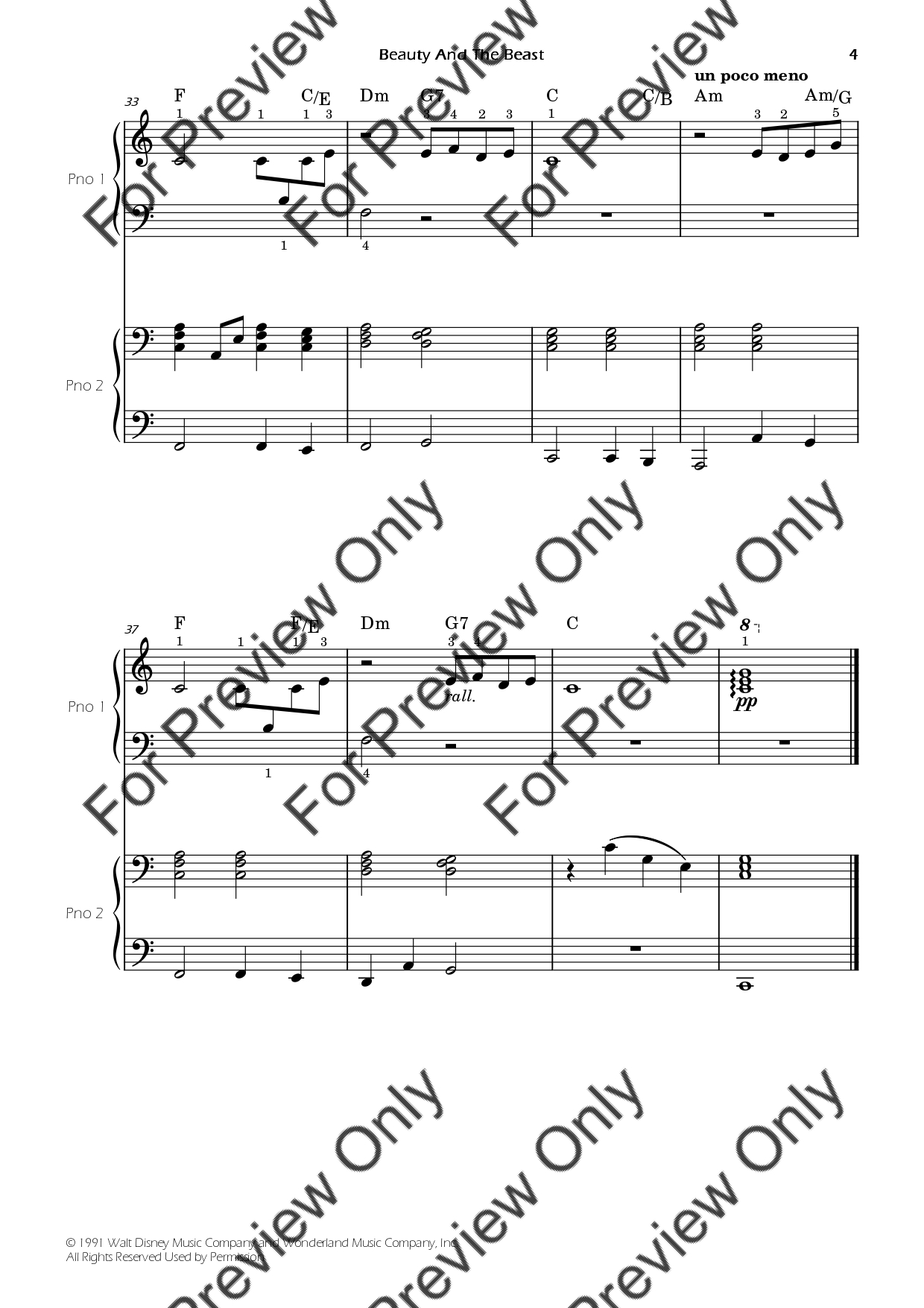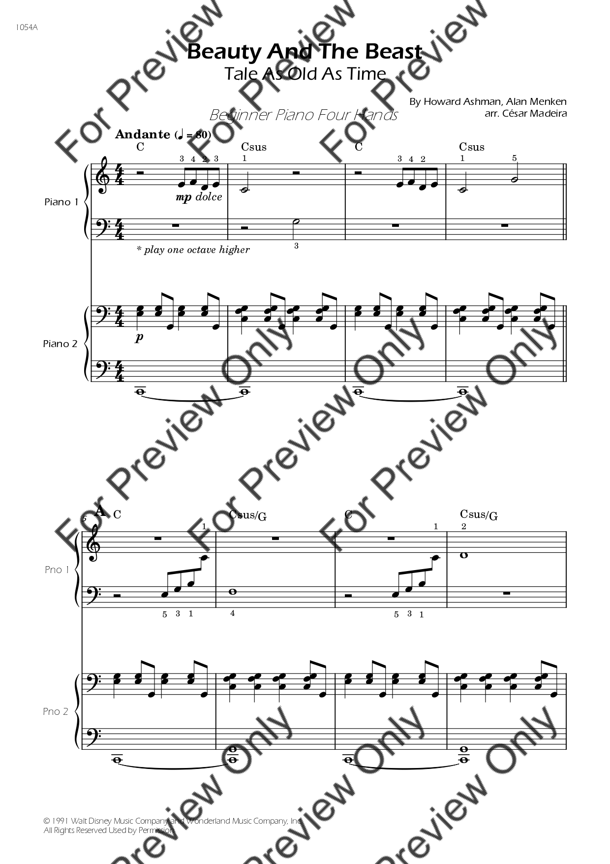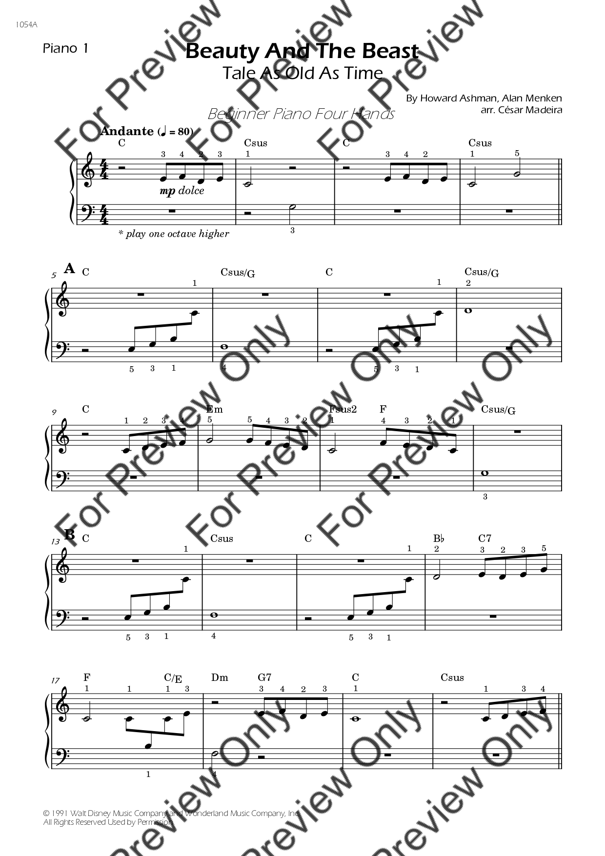 Tale As Old As Time from The Beauty And The Beast by Alan Menken. Arrangement for Beginner/Easy Piano Four Hands. With Full Score and Individual Parts. Have fun!