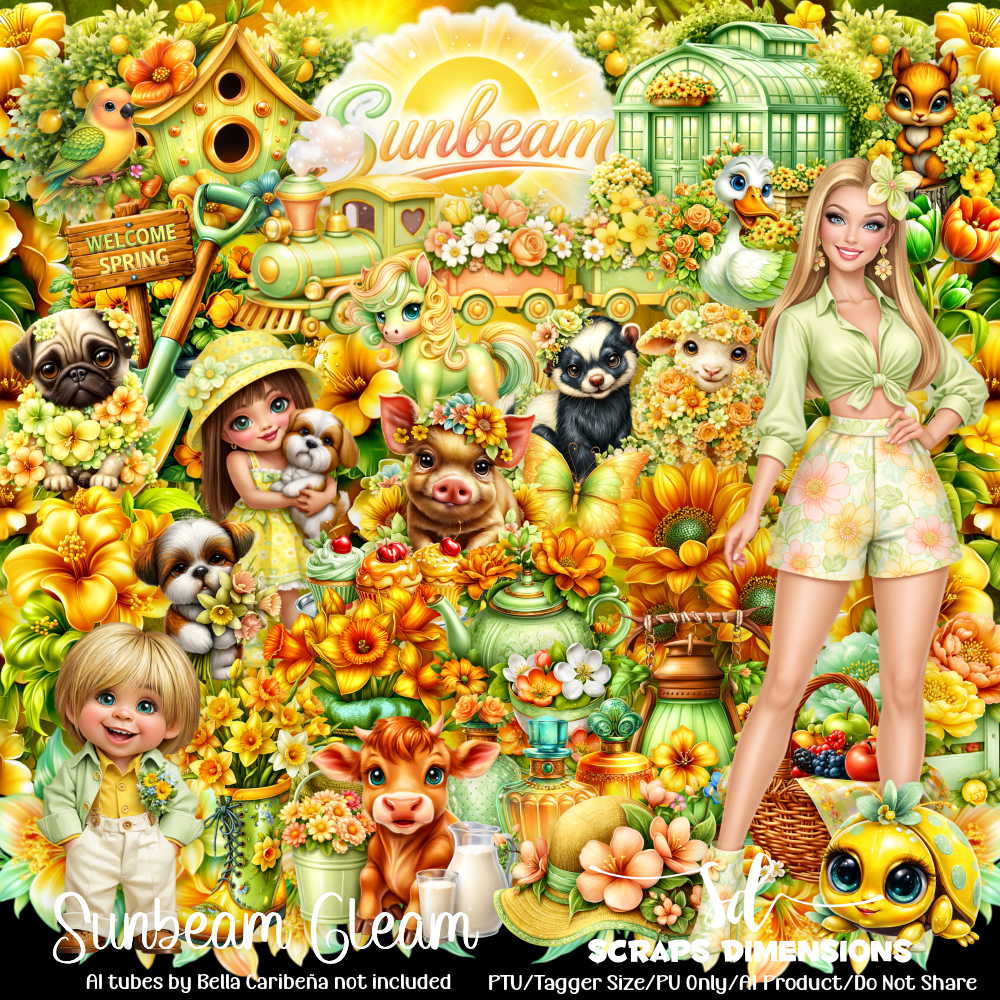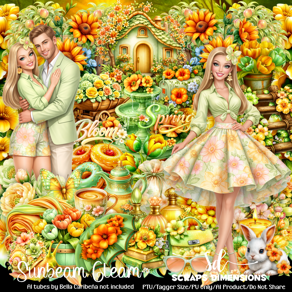 This kit contains 80 fabulous elements and 12 backgrounds. All elements in this kit are AI generated by Scraps Dimensions. Matching AI tubes by Bella Caribeña are not included. Tagger size. Perfect for your tags and projects. Personal use only. Enjoy!