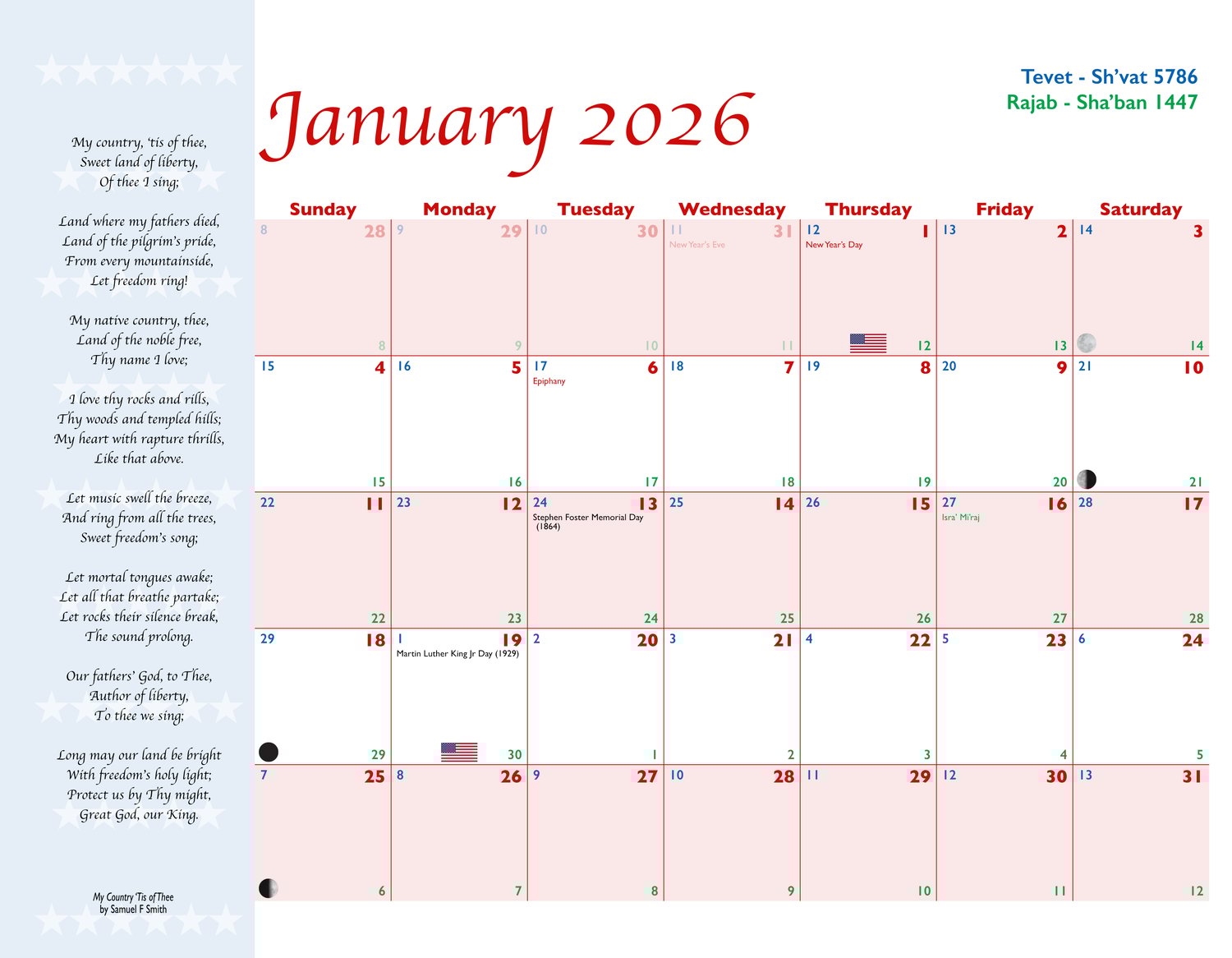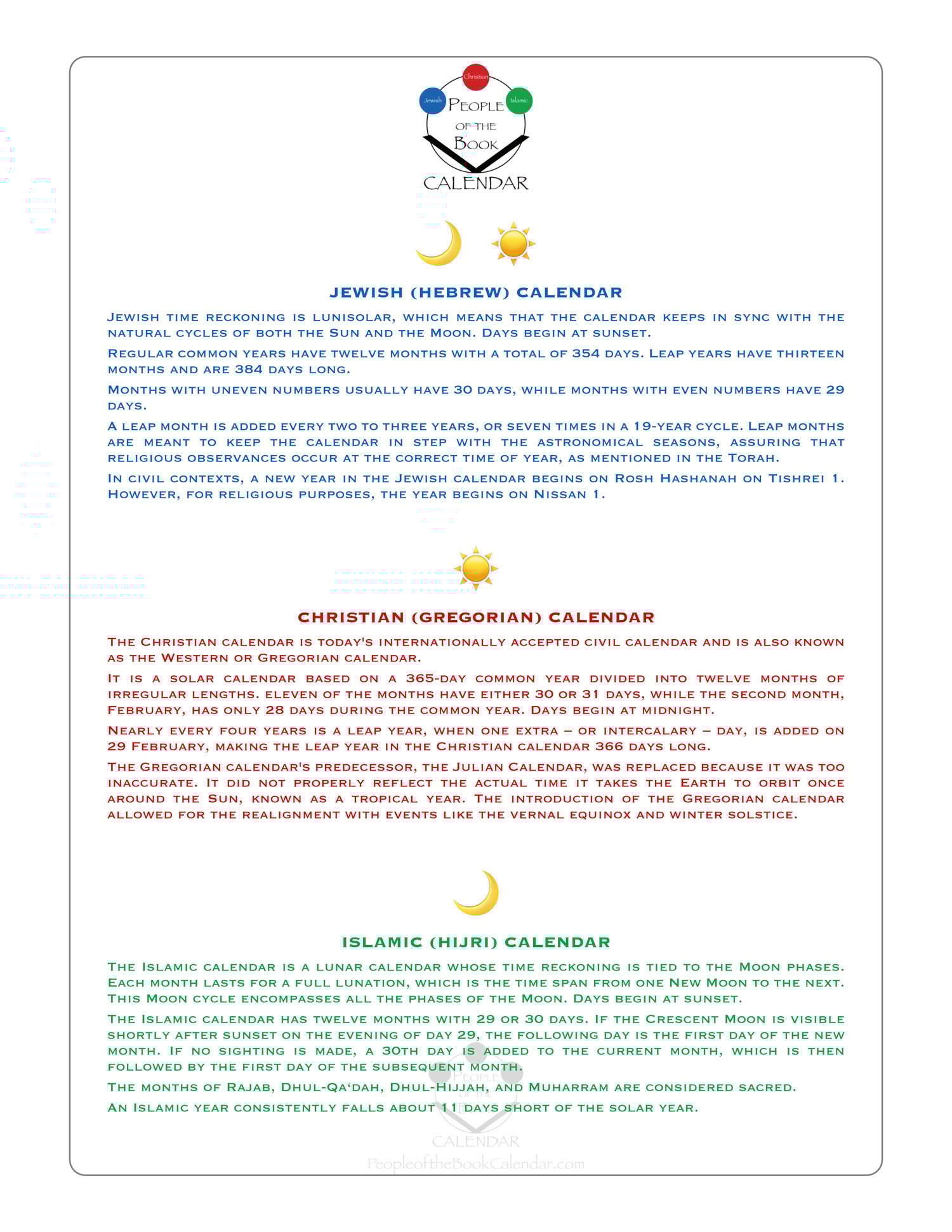 Jewish, Christian and Islamic calendars combined into one. I call it the People of the Book Calendar, referring to the "people of scripture".