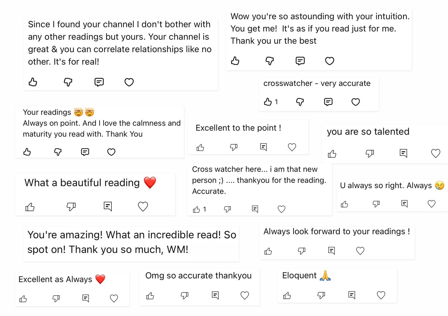 The screenshots below are a small collection of feedback from my YouTube comments, and I couldn’t include every message. You can view the readings on YouTube here: https://www.youtube.com/wmtarot