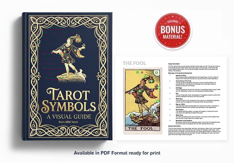 A visual cheat-sheet for the tarot images. Big, clear cards + numbered symbols, with image breakdowns and what each symbol means—so you stop guessing and start reading the details with confidence.