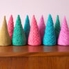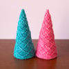 Make just one to decorate your windowsill or desk, or a make whole forest! One 50g ball of sport weight yarn will be enough for two cones, making this an excellent pattern for your fun-coloured scraps and odd balls.