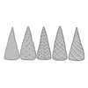 For each cone, 1 ball of Scheepjes Stone Washed (78% cotton, 22% acrylic; 142yds/130m per 50g ball) or Scheepjes Twinkle (75% cotton, 25% polyester; 142yds/130m per 50g ball), or 47yds/43m (for stockinette cones) or 67yds/61m (for patterned cones) of light DK or sport weight yarn.