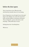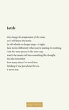 Quiet but unflinching, this collection invites the reader to stay a little longer with what is often overlooked — the soft ache of cups and curtains, the stillness of doors left slightly open, the light that falls just so.