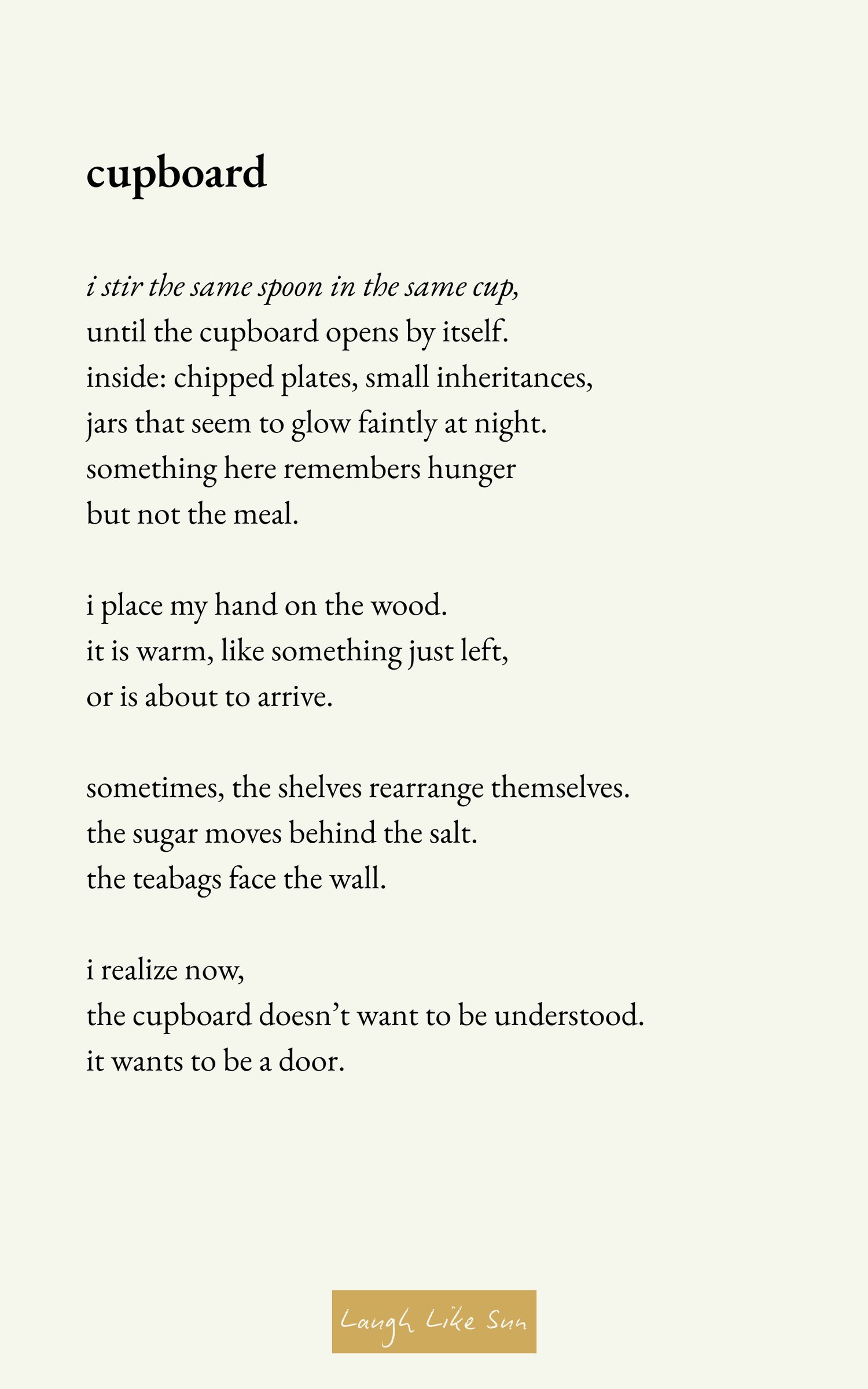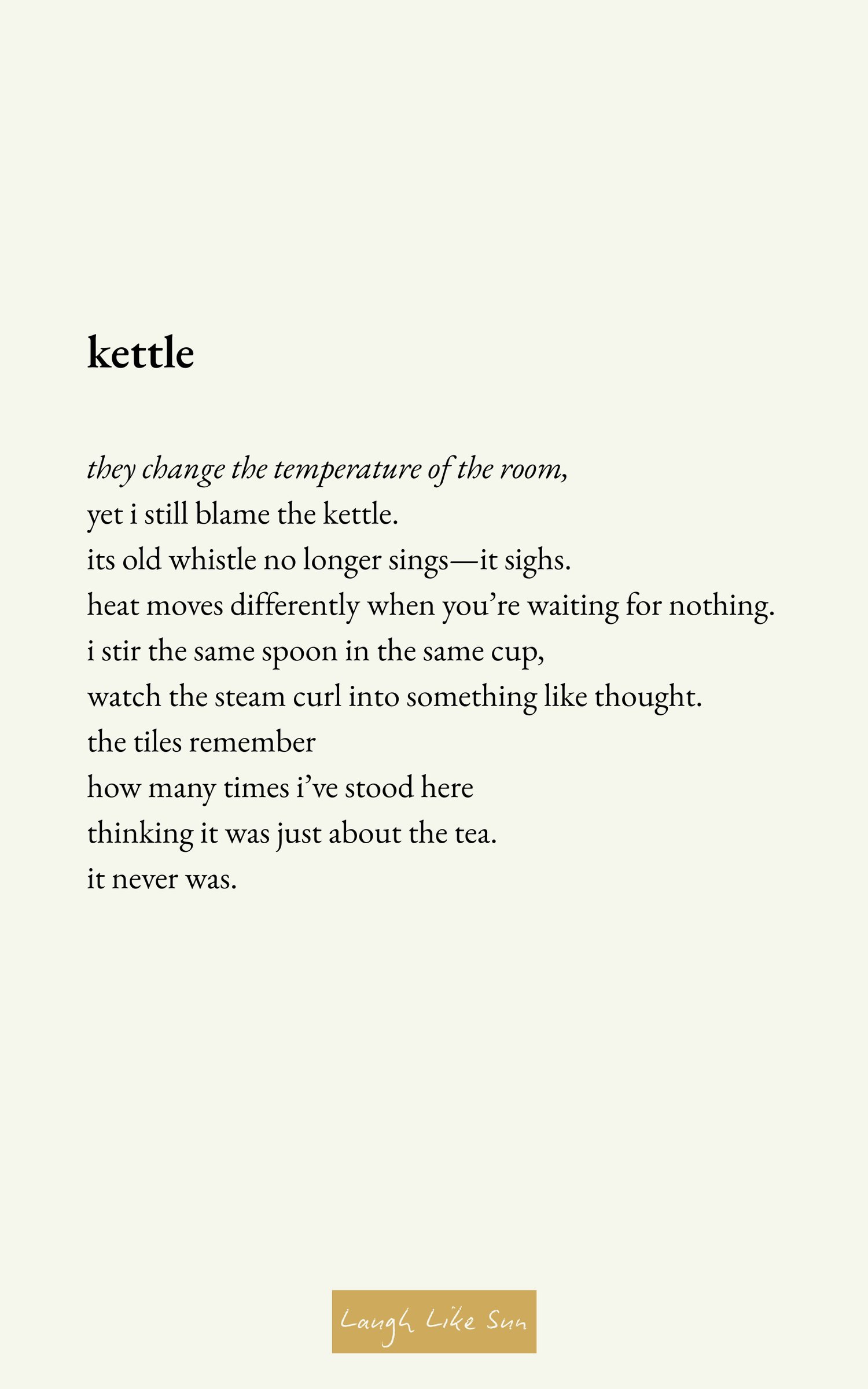 Written under the emerging collective Laugh Like Sun — a home for tender, slow-burning work that celebrates the beauty of the in-between.
