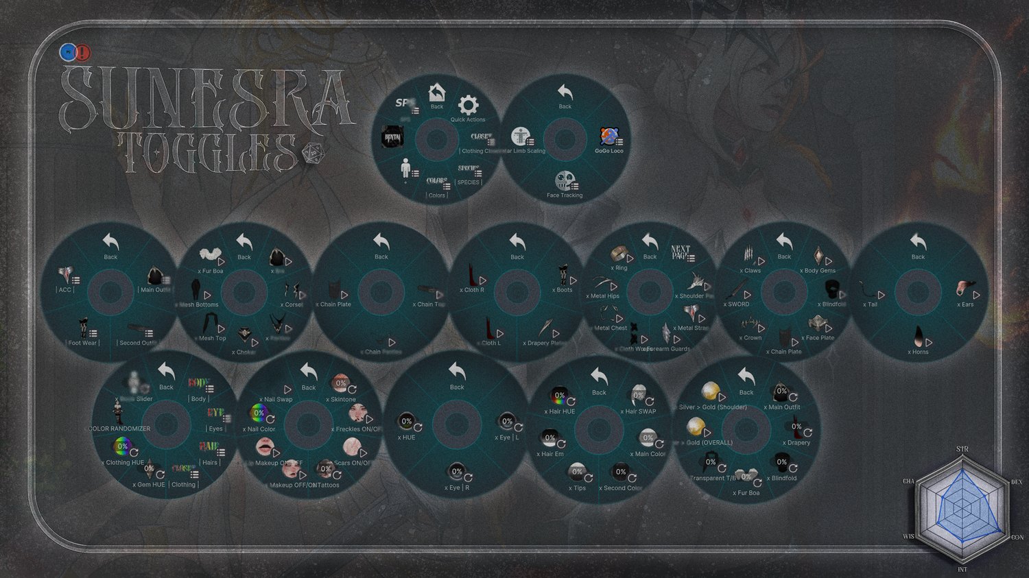 - OVERALL COLORS - (Black, Red, White, Pink) + Clothing & Gem HUE + Color Randomizer