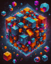 The story behind this work appears to be an exploration of the intersection between technology, creativity, and the building blocks of our digital world. The artist has crafted a series of images featuring intricate, cube-like structures adorned with circuit-like patterns and glowing with vibrant colors.