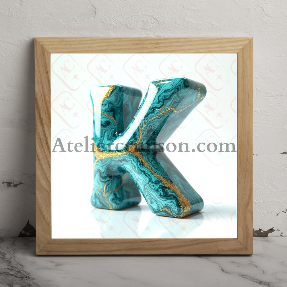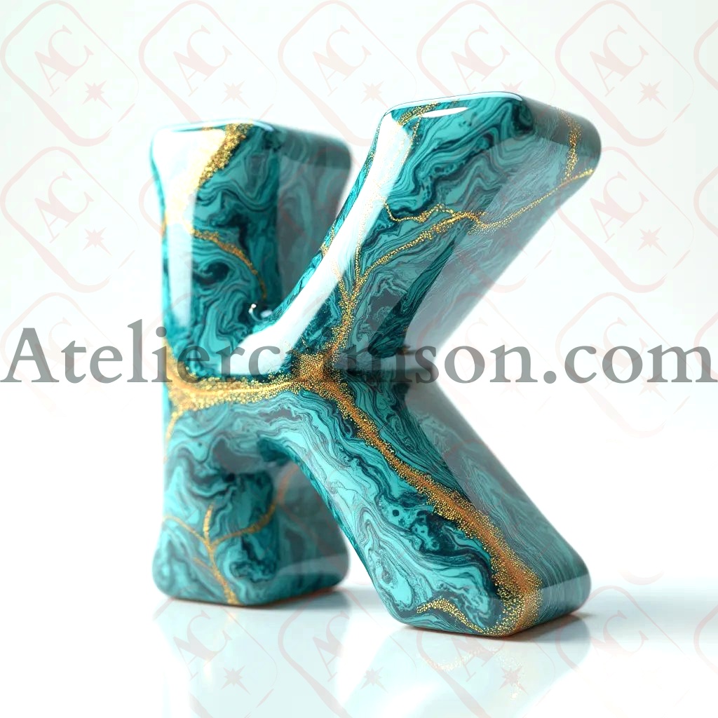 The letter K marble blue green gold download Now this high quality AI-generated image, perfect for adding a touch of tranquility and creativity to any space.