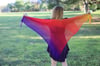 Sample shown used 1000 yards of fingering weight yarn from Vivid Fiber Arts (100% Tencel, Fingering weight yarn) in colorway Sonrisa.