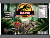 The Dinosaur Canva editable party favor design and mockup for items such as water bottles, chips, Rice Krispies, Capri Sun, candy bars, Pringles, and boxes is a vibrant and adventurous template set, perfect for a dinosaur-themed celebration. Each design features a lively and earthy color palette of greens, browns, and oranges, capturing the exciting and prehistoric world of dinosaurs.