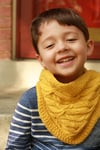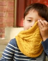 Shawls don’t work as well for people on the move, especially little ones—they’re liable to fall off and get lost. So I’ve included a stay-put cowl version as well. The Greenbrier cowl features the same cable motif, and is worked flat and seamed so the cables wind horizontally around the neck and you can easily work it to the exact circumerence you want. Finish it off with the same modified garter stitch picked up and worked around the top and bottom.