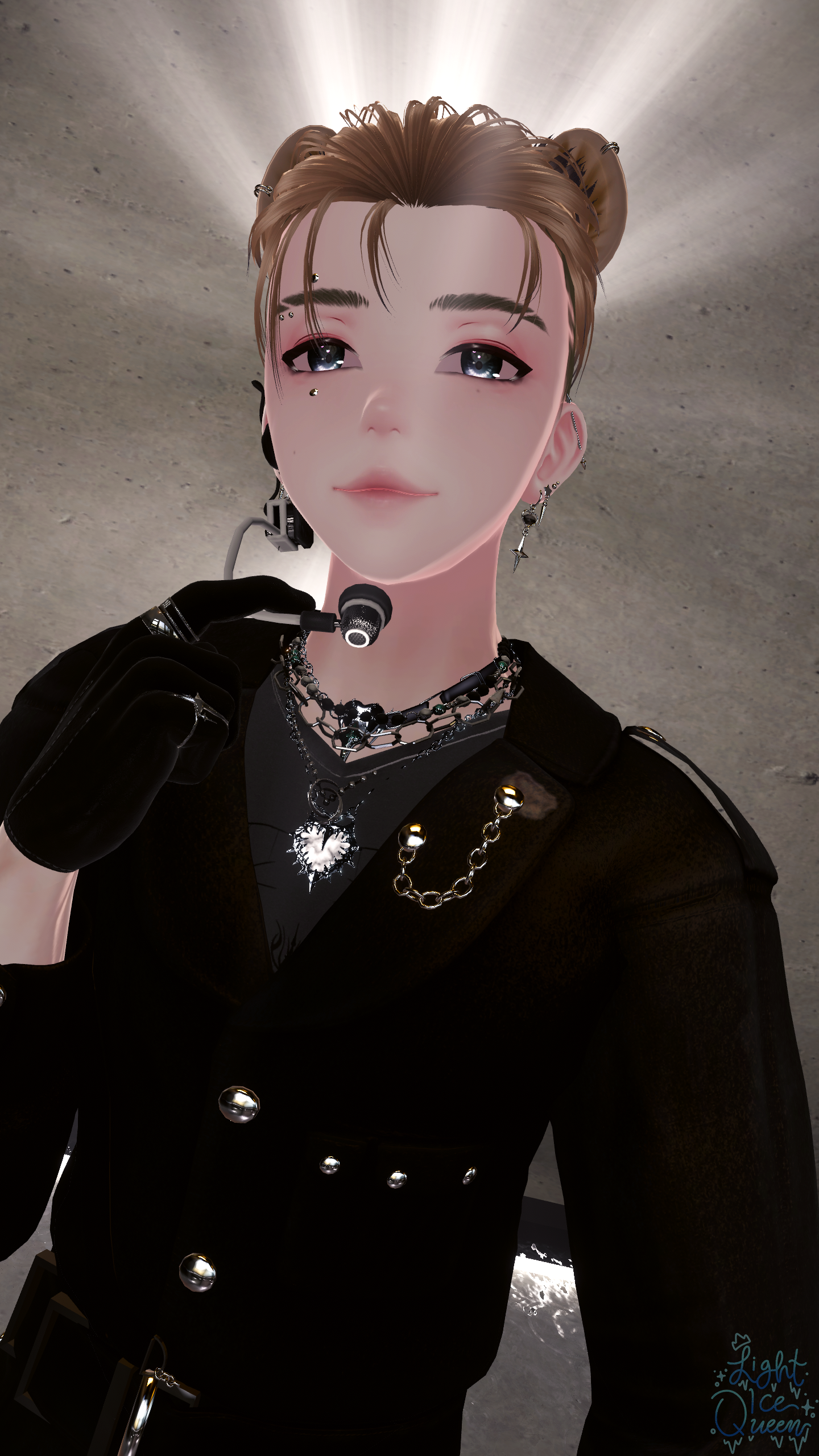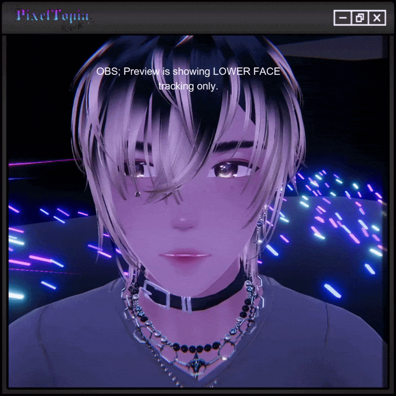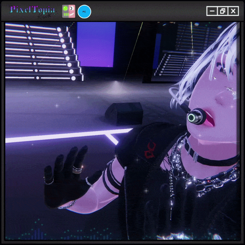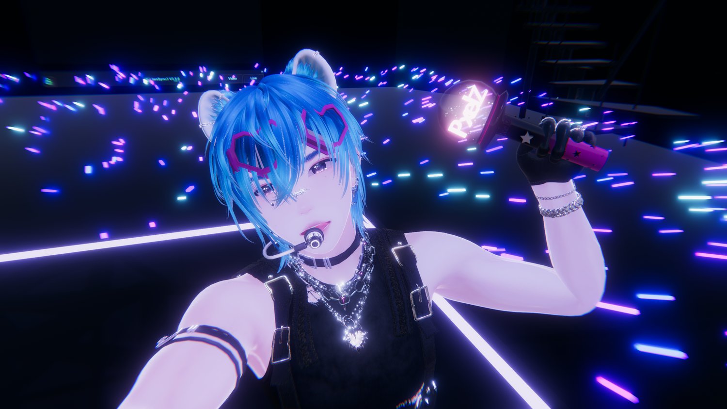 - Mic (lights up green i different strength when using visemes and talking, turns red when muted)