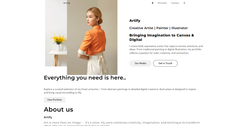 A bold, creative 3-page portfolio template for artists, illustrators, and designers. Showcase your artwork, projects, and creative vision in a professional, fully responsive layout.