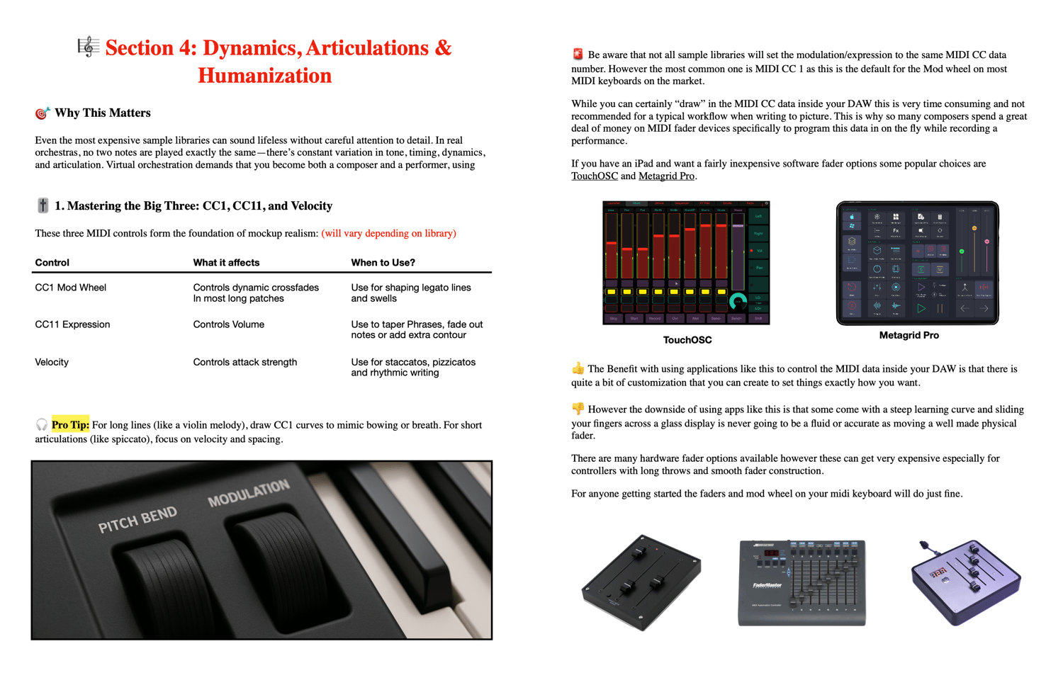 - Sample library-specific tips for avoiding artificial-sounding notes