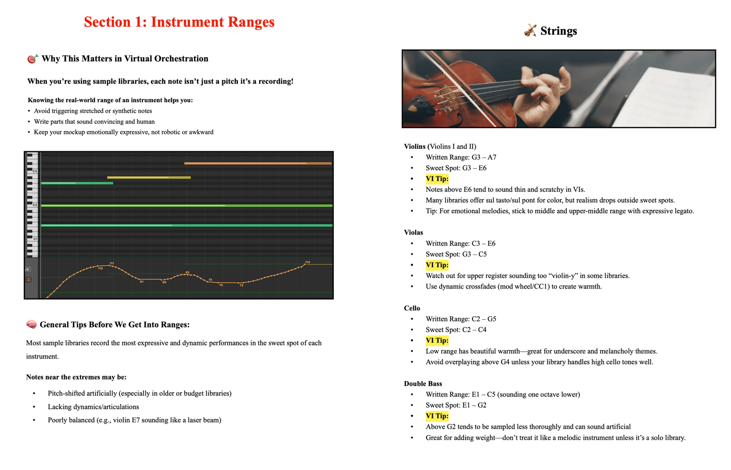 📊 Section 1: Instrument Ranges & Sweet Spots