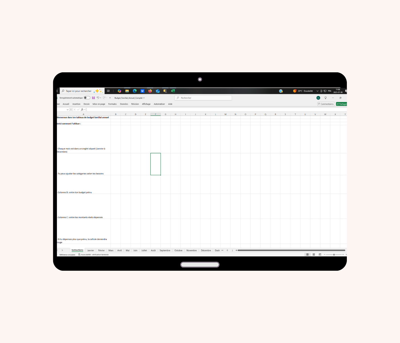 Ce fichier a été conçu pour t’aider à tout suivre au même endroit – sans casse-tête, même si tu n’aimes pas les chiffres.