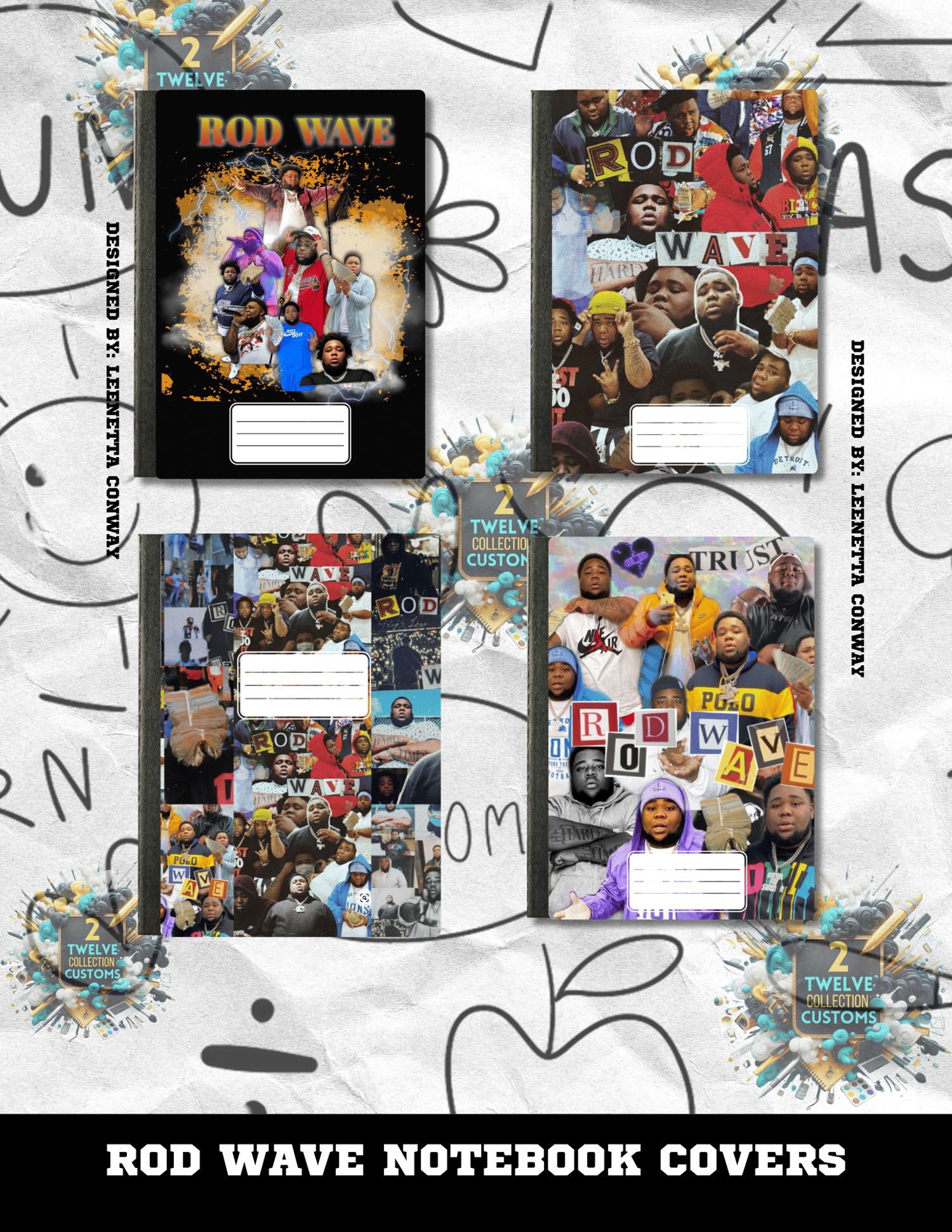 Rod Wave Composition Notebook Covers Canva Template 4 Pack