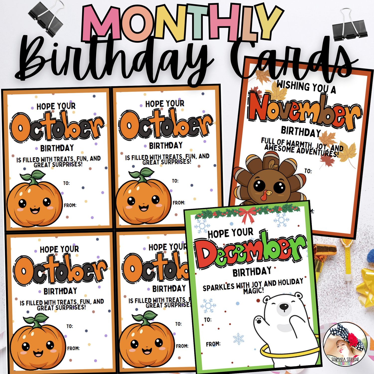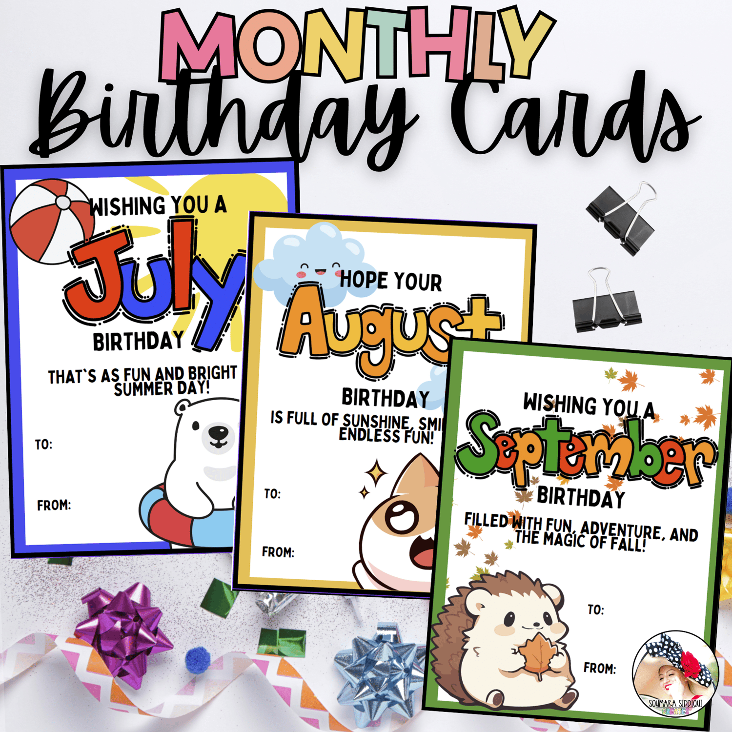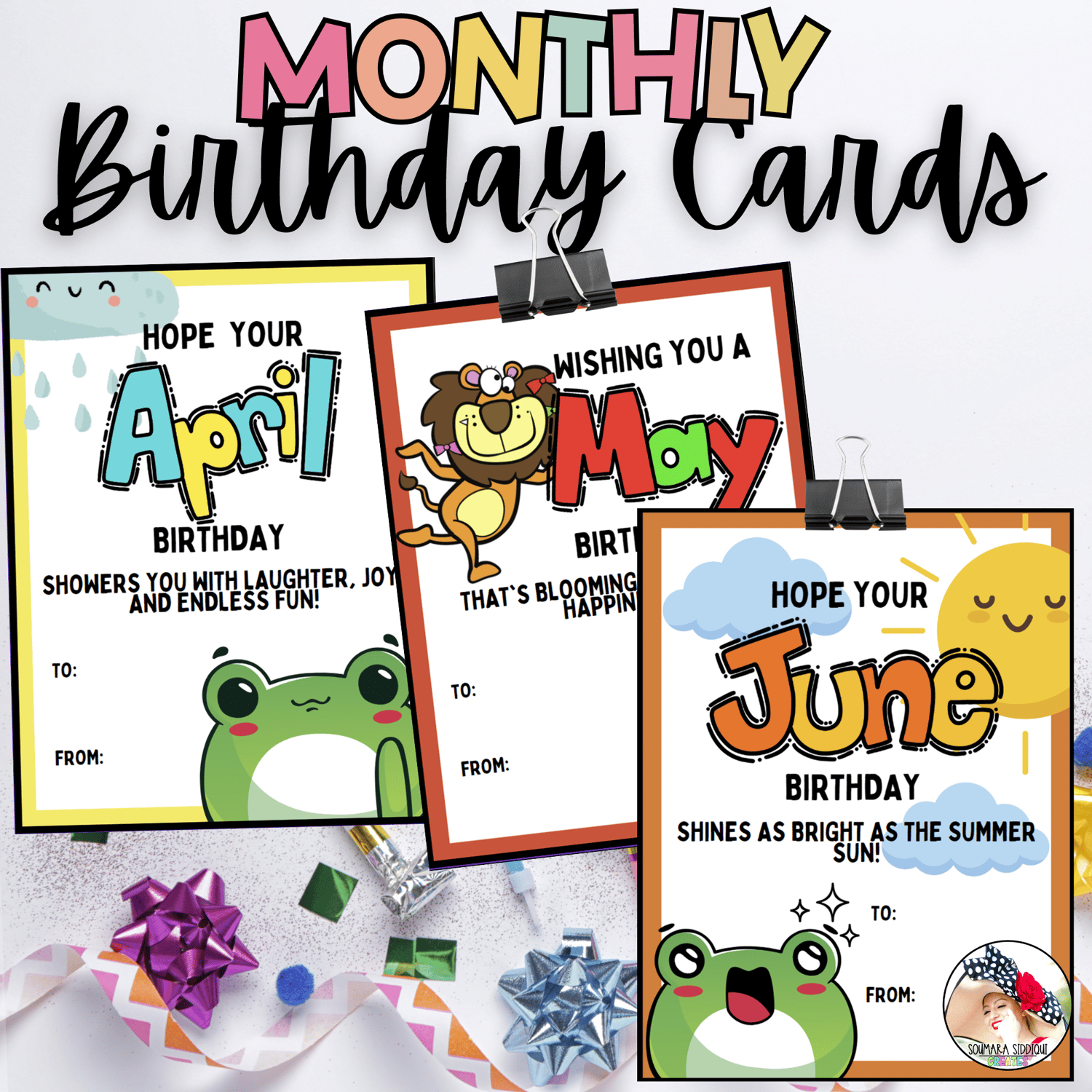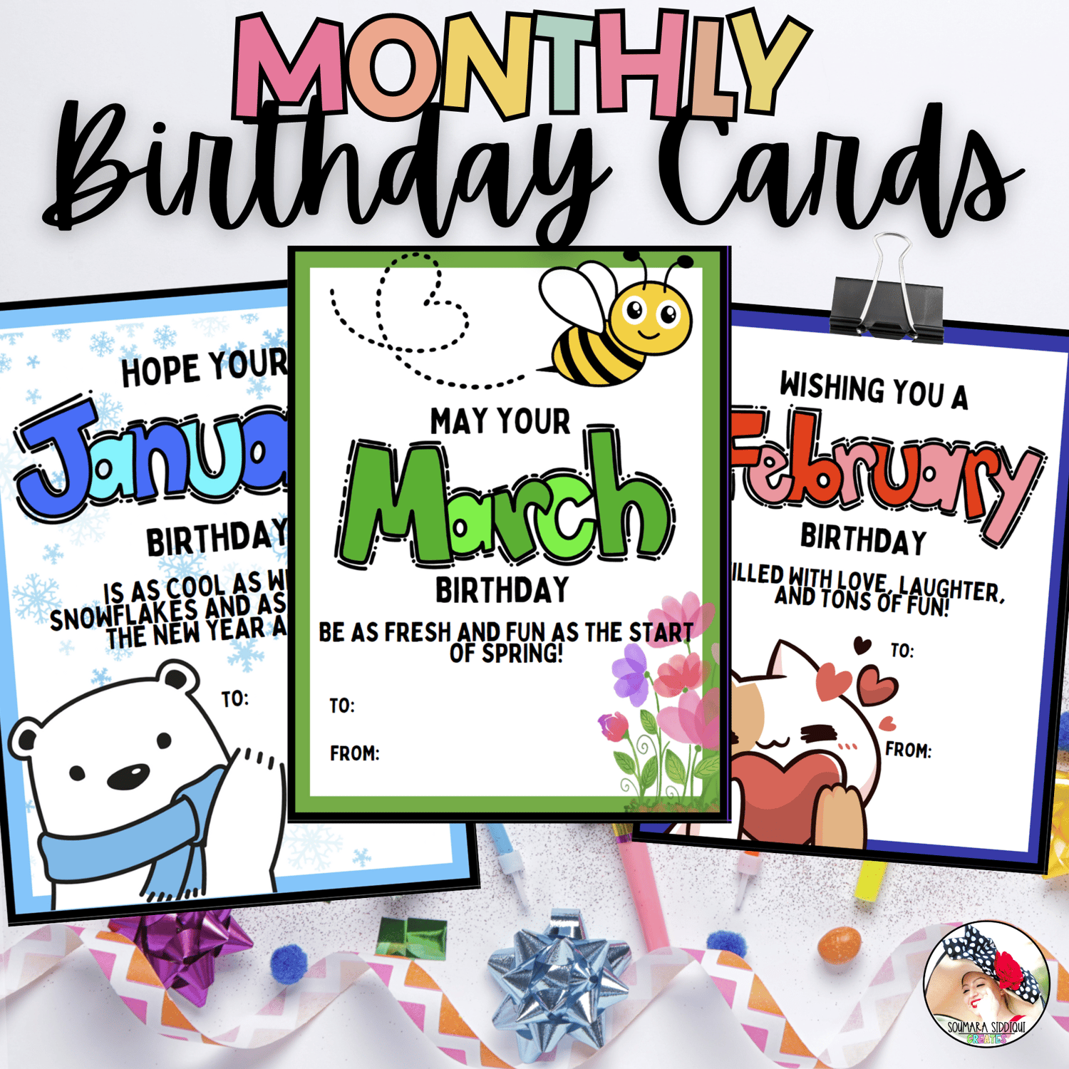 - Colorful birthday cards for every month