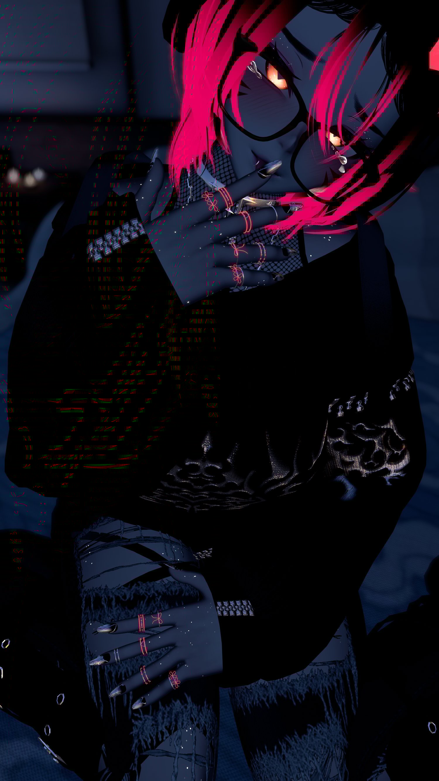 Lunaria, the dusk vampire, a fright right before midnight! Mostly for lounging and chatting in your favorite VRChat world. Lunaria's photos are all un-edited disregarding the one with her name.
