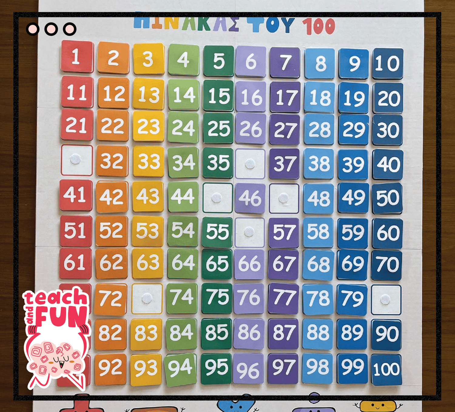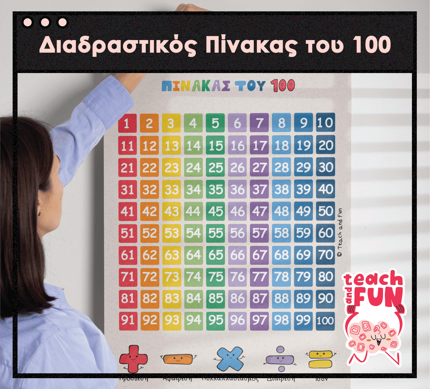 - 1 αρχείο με πινακάκι του 100 για να κολλήσετε στα θρανία ή το τετράδιο των μαθητών.