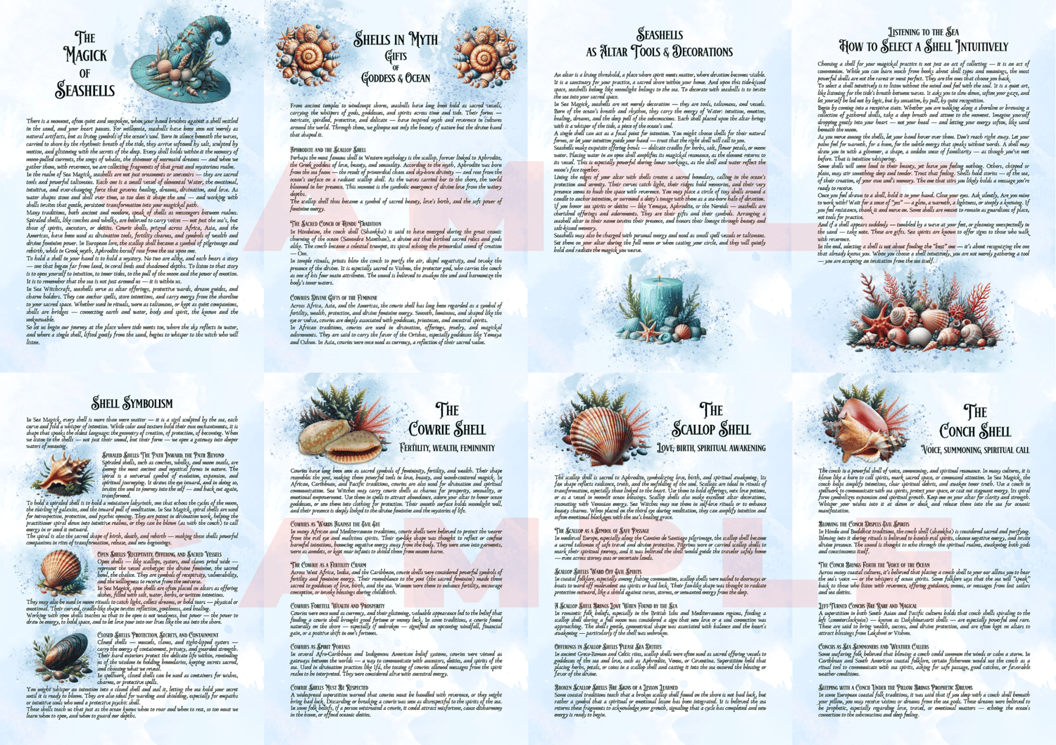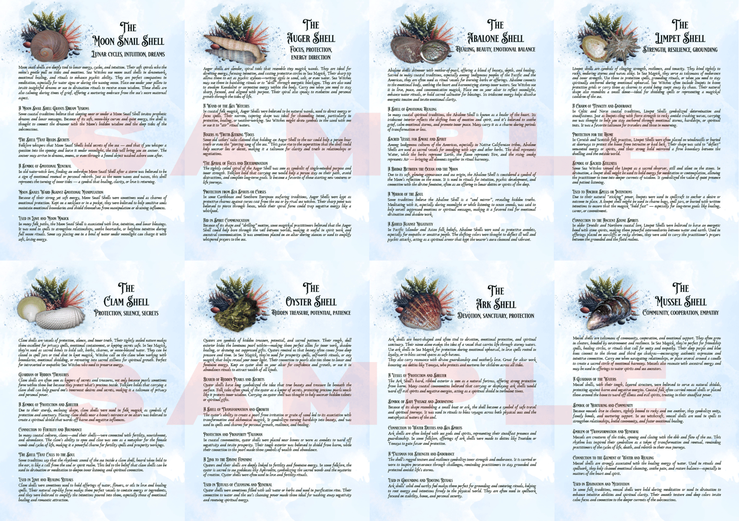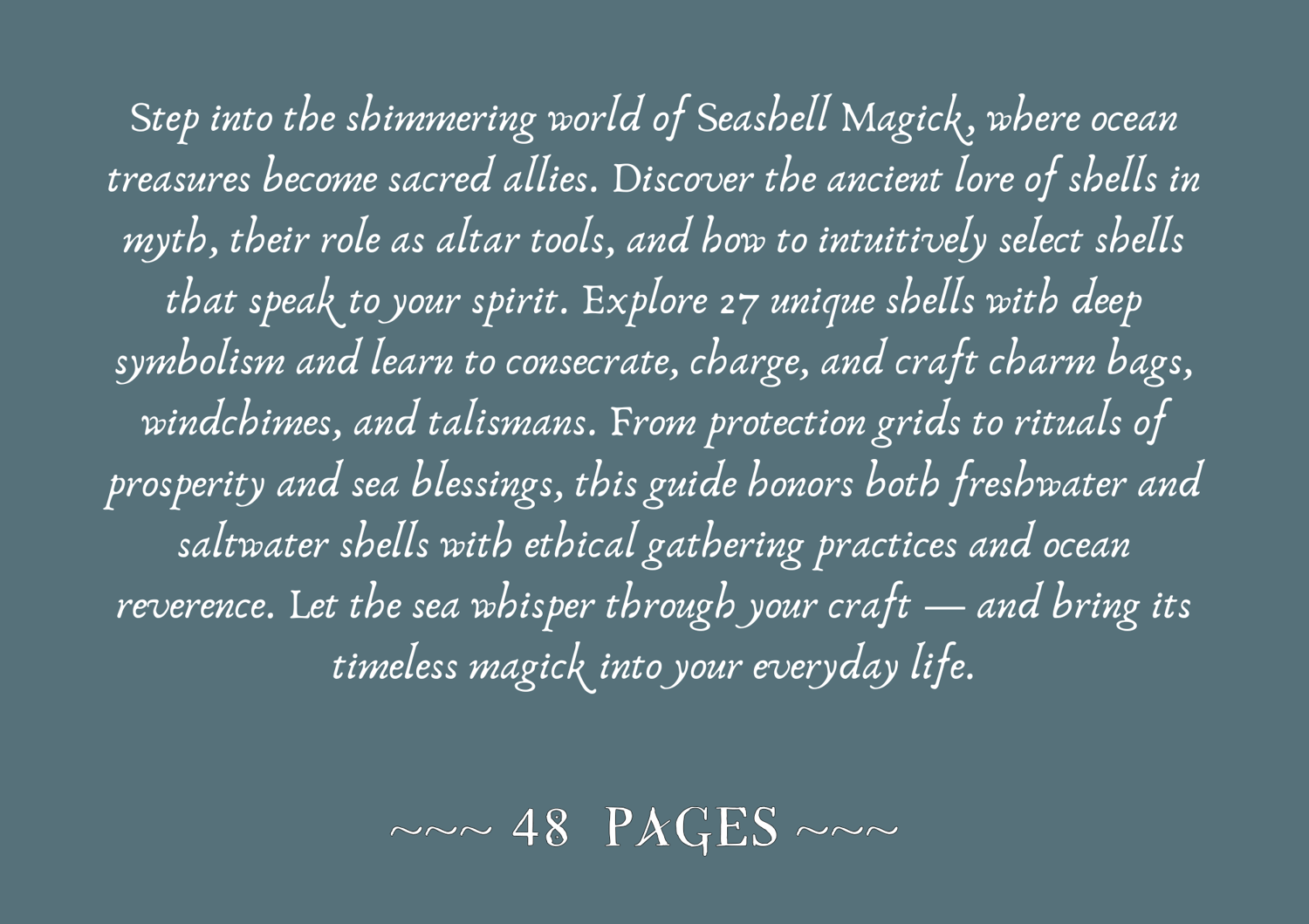 Step into the shimmering world of Seashell Magick, where ocean treasures become sacred allies. Discover the ancient lore of shells in myth, their role as altar tools, and how to intuitively select shells that speak to your spirit. Explore 27 unique shells with deep symbolism and learn to consecrate, charge, and craft charm bags, windchimes, and talismans. From protection grids to rituals of prosperity and sea blessings, this guide honors both freshwater and saltwater shells with ethical gathering practices and ocean reverence. Let the sea whisper through your craft — and bring its timeless magick into your everyday life.