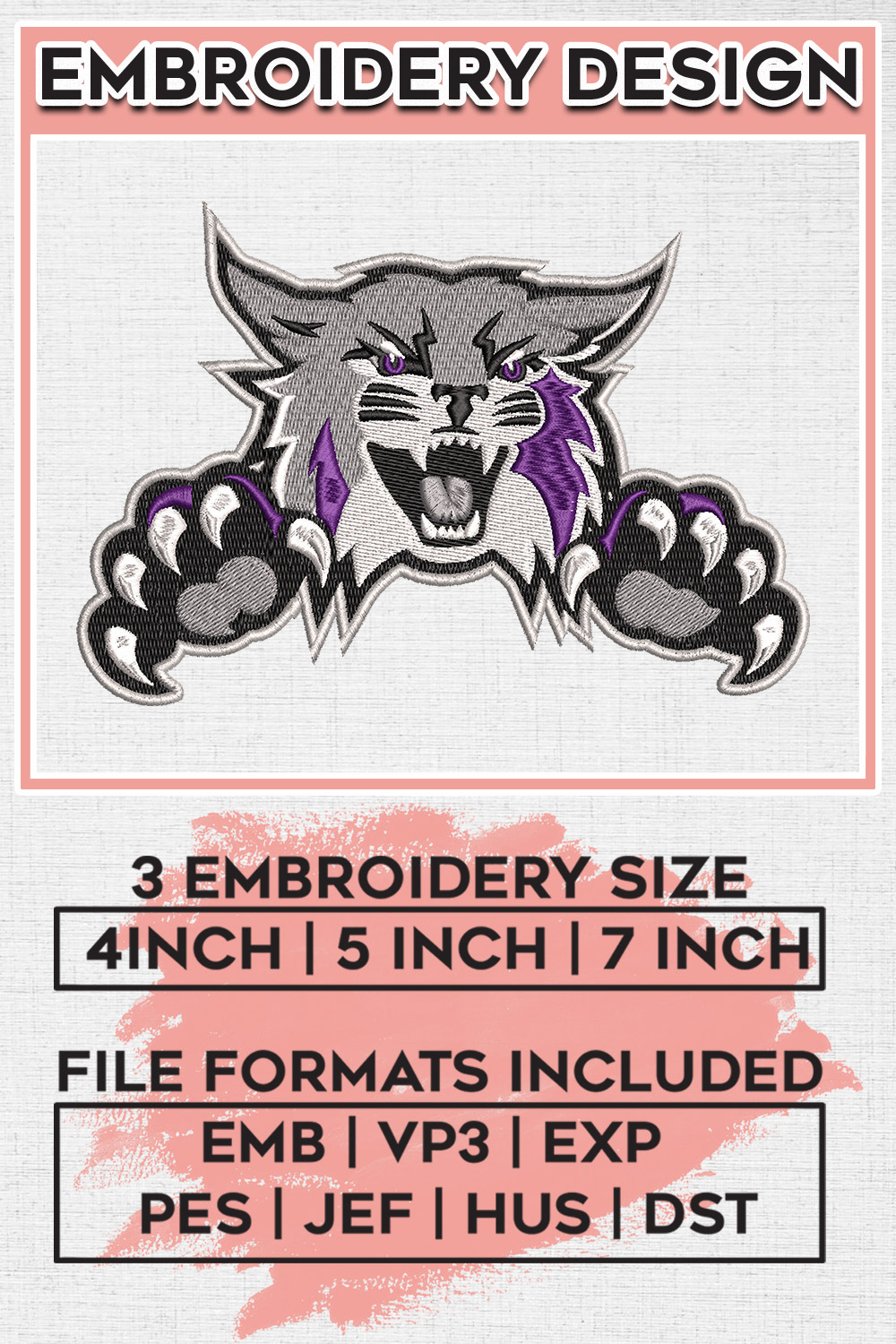 Weber State Wildcats NCAA Football Team Mascot Logo Embroidery Files, NCAA Weber State Wildcats Team Embroidery, NCAA College Football Teams, Weber State Team Emroidery, 3 sizes, Machine embroidery designs, Digital Download