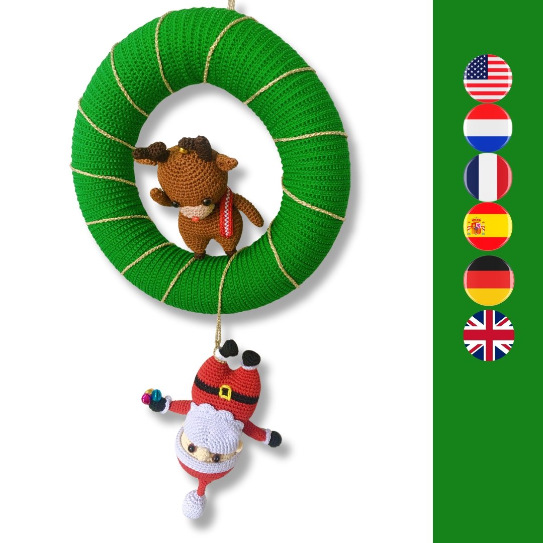 Yarn colors needed: green, red, white, black, skin color, yellow, brown, beige, dark brown, metallic gold