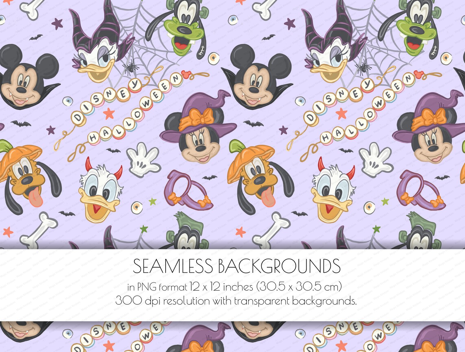 1 Disney Halloween Mickey and Friends Seamlessbackground in PNG format 12 x 12 inches (30.5 x 30.5 cm) 300 dpi resolution .