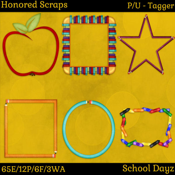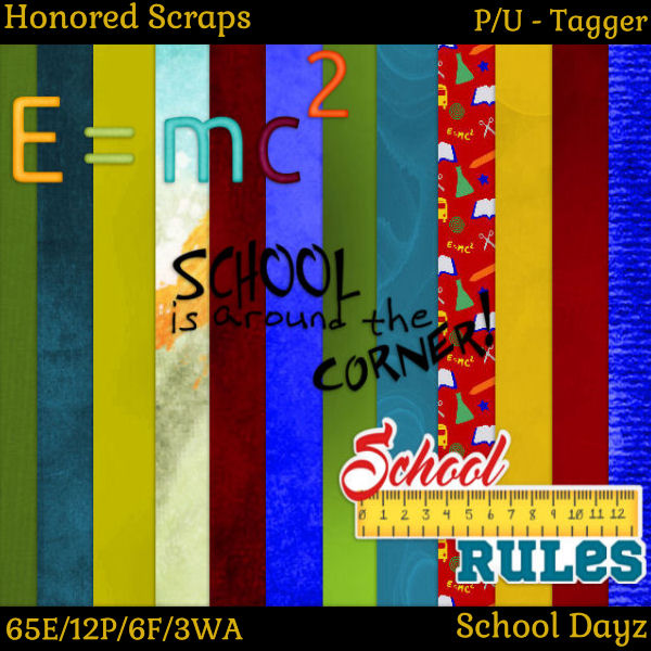 School Dayz is a tagger kit that consists of 65 elements, 12 papers, 6 frames and 3 word art.