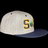 “OMEN” is a stylish 25,006 fill & satin stitch front design on a baseball silhouette, flat brim, high quality SnapBack, hat. Fits sizes 7&5/8 and smaller comfortably. Available in Heather Grey/Navy Blue (Pictured), Navy Blue, White, Heather Grey, & Black.