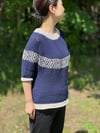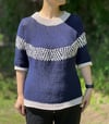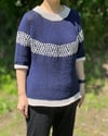 2 tones tee is a simple sweater with 2 colors and with mosaic pattern on the upper body. This design is worked form the top down and worked in the round. You can adjust the chest measurement and the length as you like.