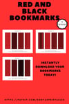 12 Red And Black Bookmarks | Printable Black And Red Bookmarks | Red And Black Page Holders | Gift For Readers