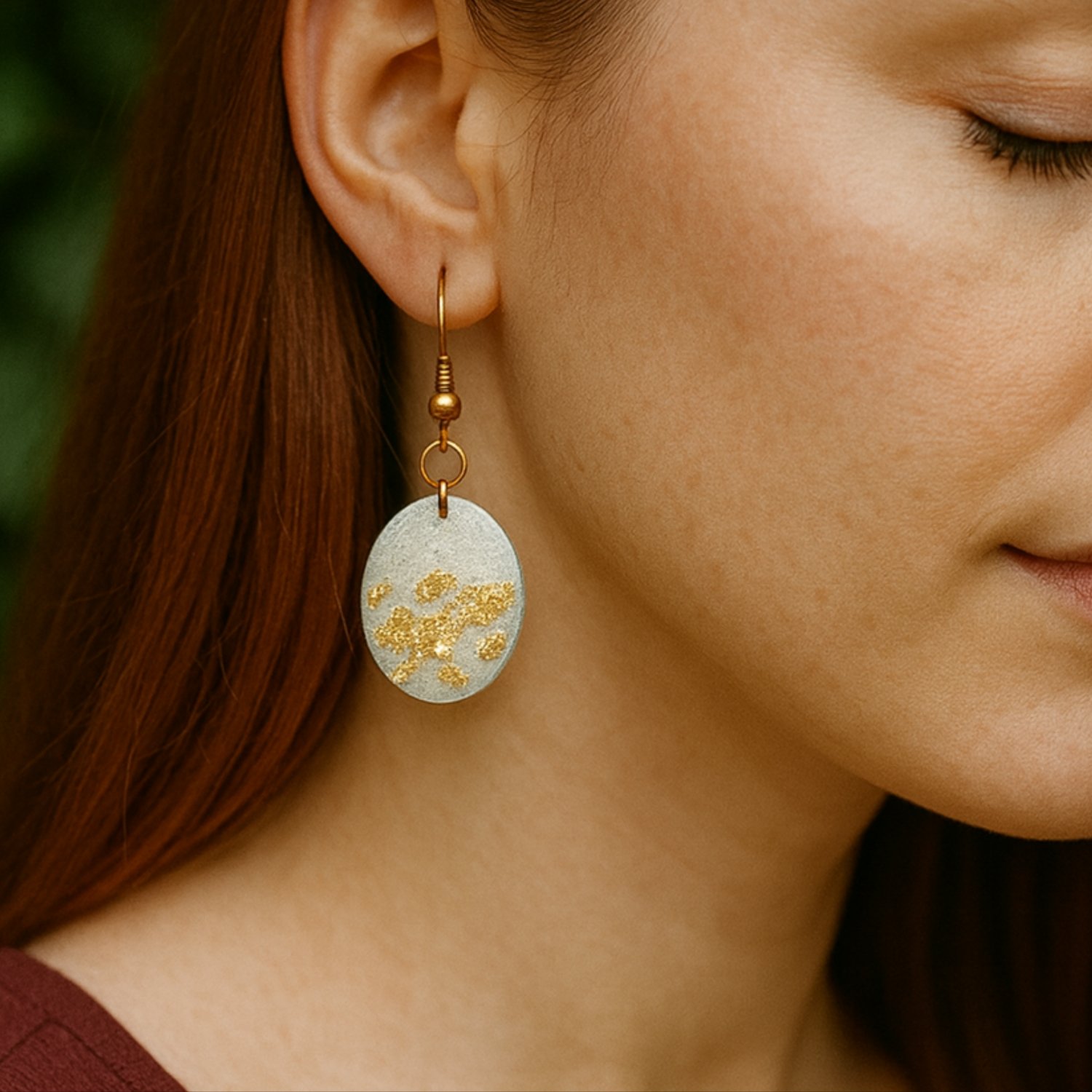 The All Is Calm earrings are designed to bring a soft, peaceful glow to your winter wardrobe. Each pair is handcrafted with a smooth, neutral base and finished with delicate, hand-placed gold accents that catch the light in a subtle, understated way.
