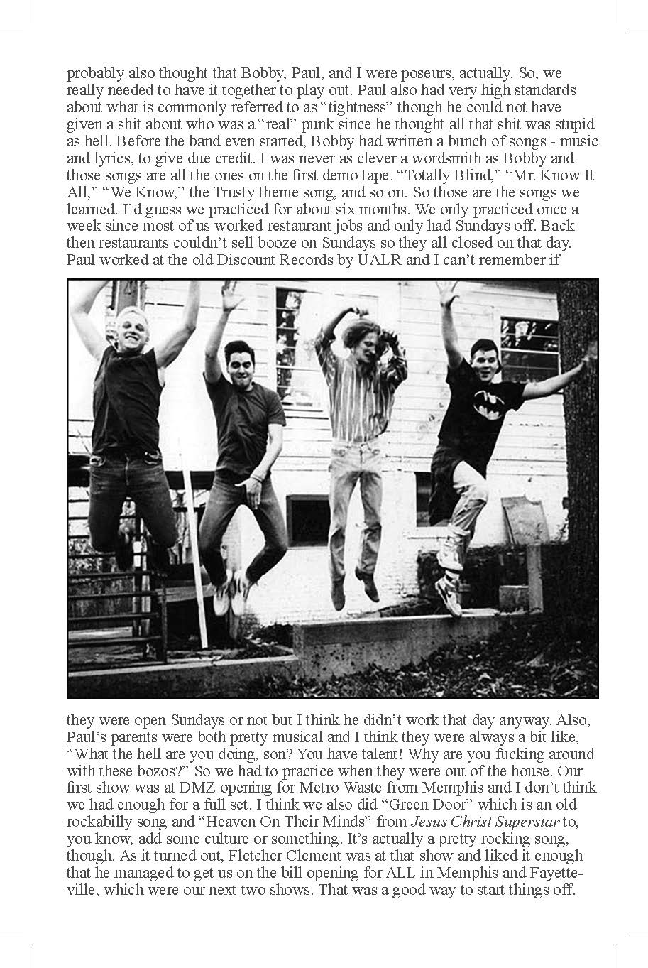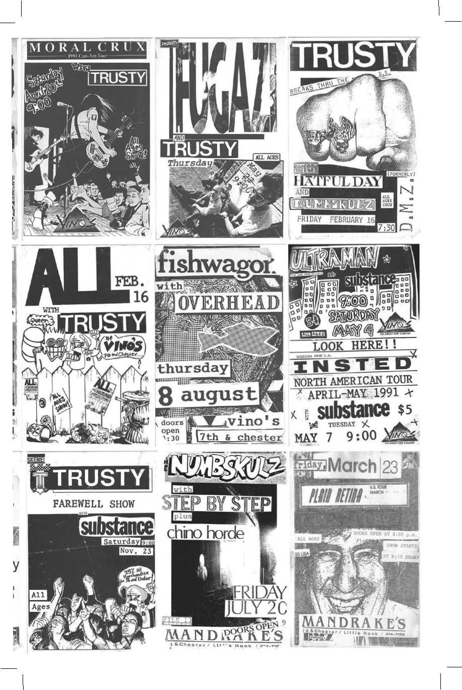 "In the late ‘80s, a punk rock scene began to grow out of an art space on the corner of 7th Street and Chester in downtown Little Rock, Arkansas. It switched hands and names, from Urbi et Orbi to DMZ to Nemesis then Mandrake’s before Henry bought the place, built a pizzeria and named it Vino’s. Most people outside of Little Rock won’t recognize most names within this issue, but the names are insignificant. What matters is the connection that was made between teenagers all over the city who found each other at the only “alternative” space Little Rock had at the time. I believe that’s what we all truly crave - a common bond. Something to grab onto and call our own. This bond that was formed on that corner has stuck and what was once a scene is now something much deeper and more meaningful. To me, punk rock has always been about building something and the greatest structure erected from it has been the friendships we’ve made, and we continue to make. It was built from the ground up. Fletcher Clement booked the shows, Colette Tucker hung the flyers and John Pugh and others published fanzines. James Brady, Andy Conrad and Colin Brooks played in the bands. Dozens of others did their part, from working in copy shops to taking out the trash at the end of the night.