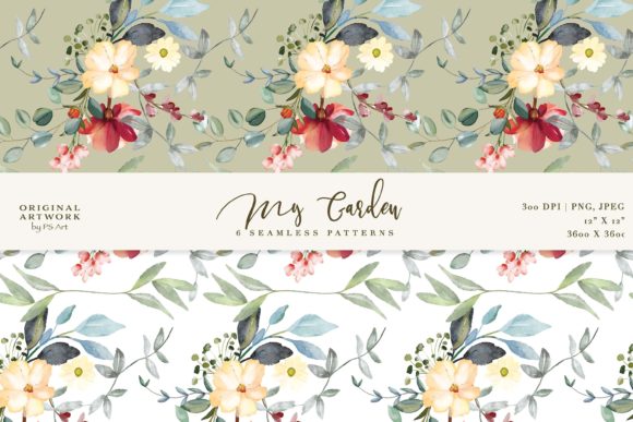 Watercolor Floral Seamless Pattern Set