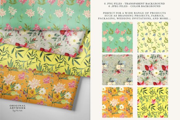 - 6 seamless patterns in .png format with a transparent background for versatile use.