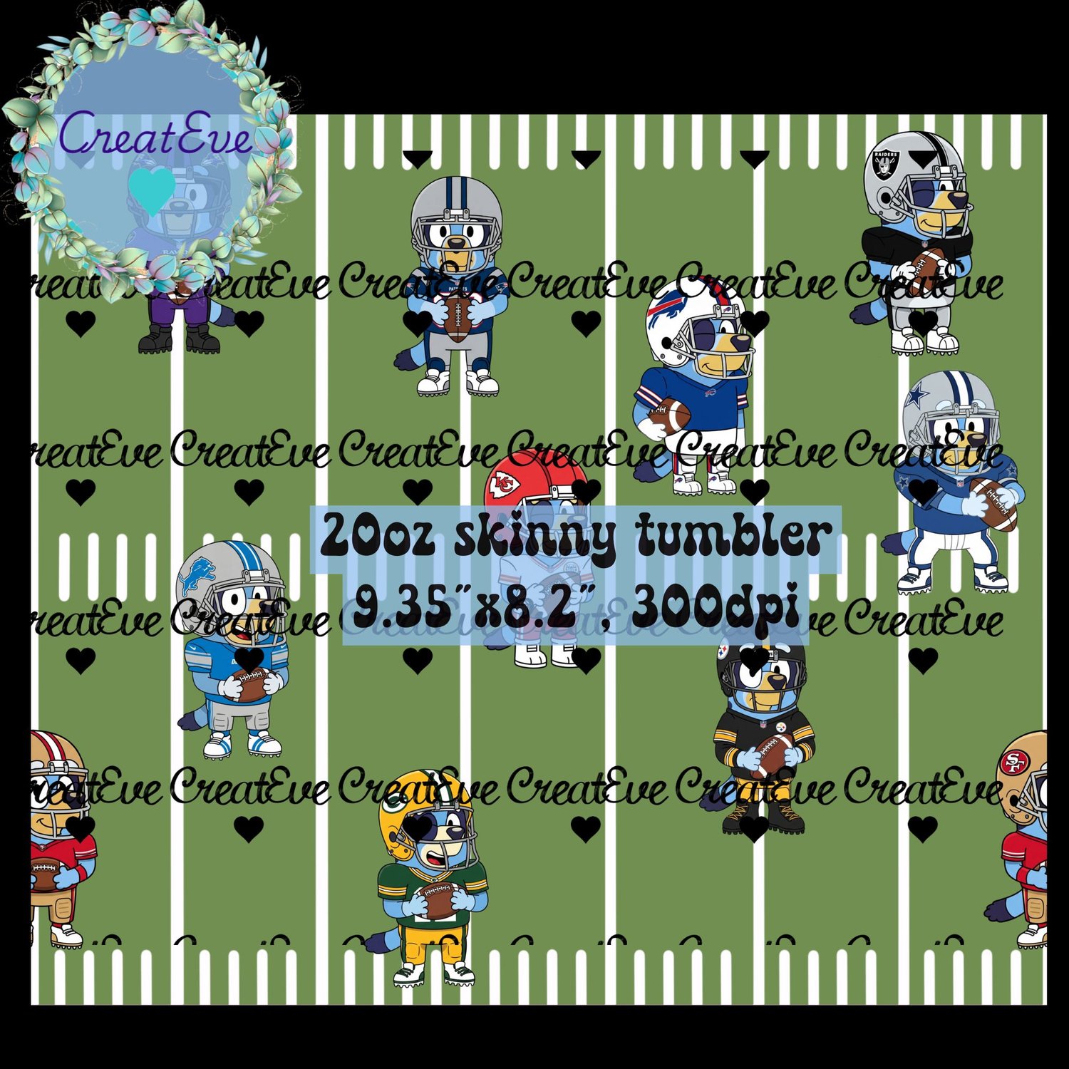 Bluey NFL 20oz Seamless Skinny Tumbler PNG 300dpi
