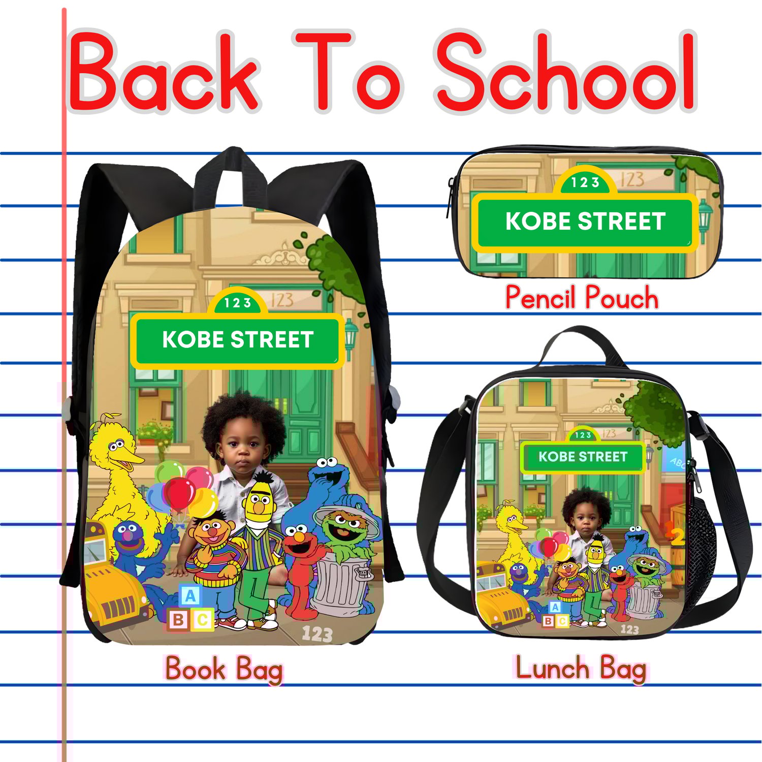 Get ready for back-to-school season with this vibrant Sesame Street editable template, perfect for creating personalized kids' gear. This template features beloved Sesame Street characters, making it an ideal choice for children’s backpacks, lunchboxes, face masks, shirts, and more. Customize the design with your child's name and photo using Canva, the user-friendly online design platform. Please note, reselling the template itself is prohibited, but you are free to use it to create physical products for commercial sale.