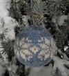 These ornaments are cleverly constructed without the necessity of awkward knitting around styrofoam balls. The ornaments are made in two sections with all shaping worked in stockinette in the main color. The pieces are later placed over a ball and grafted together using kitchener stitch. This requires a bit of patience but is much easier and enjoyable than trying to knit around a solid ball.
