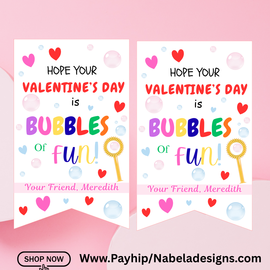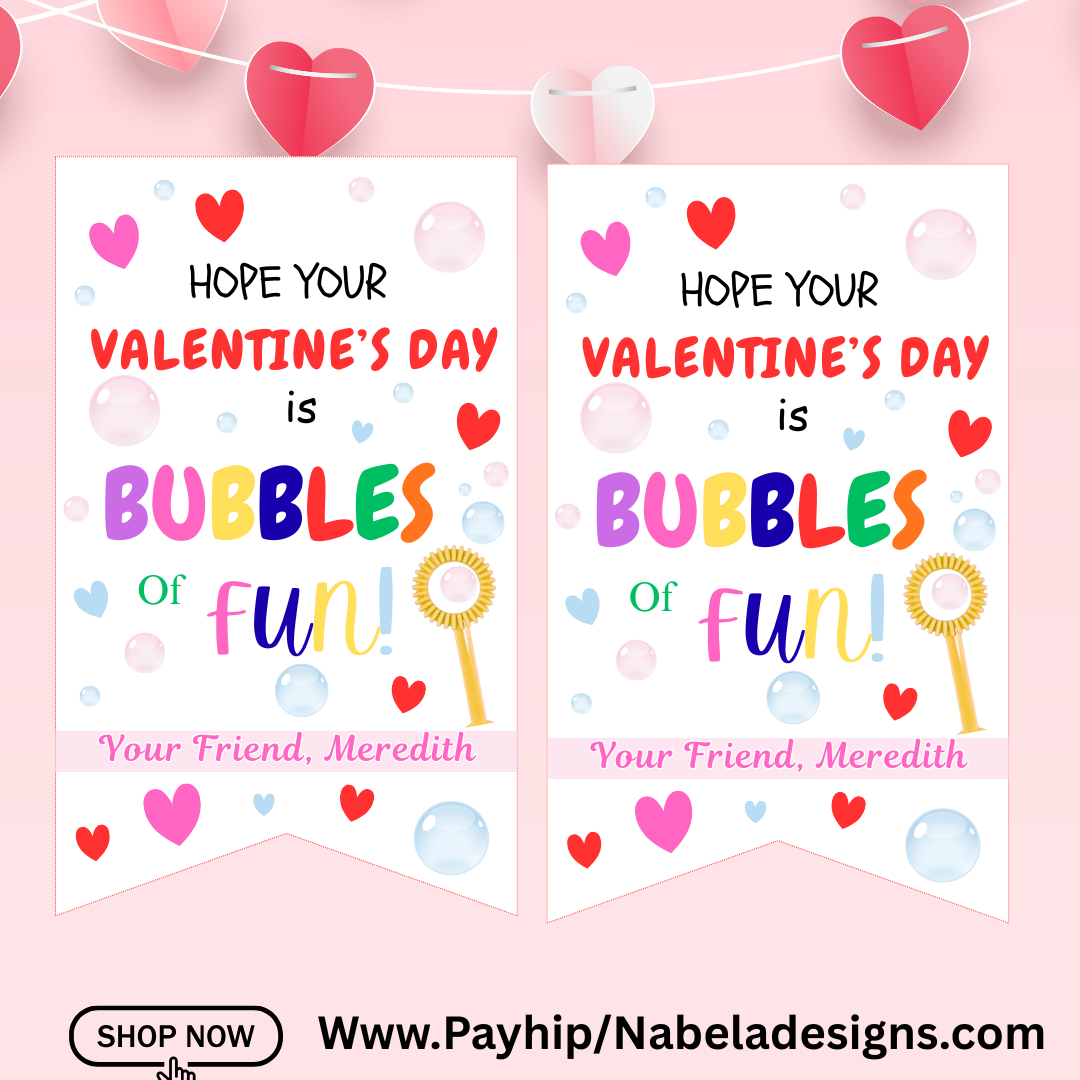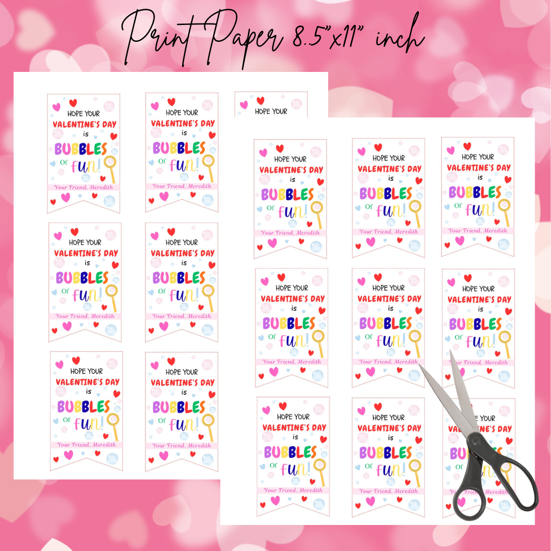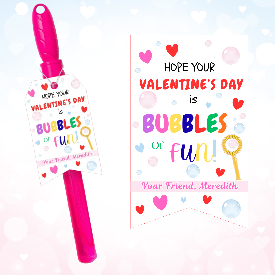 Valentine’s Day Bubble Wand Tags | Printable Valentine Bubbles Favor Tags | Kids Classroom Valentines